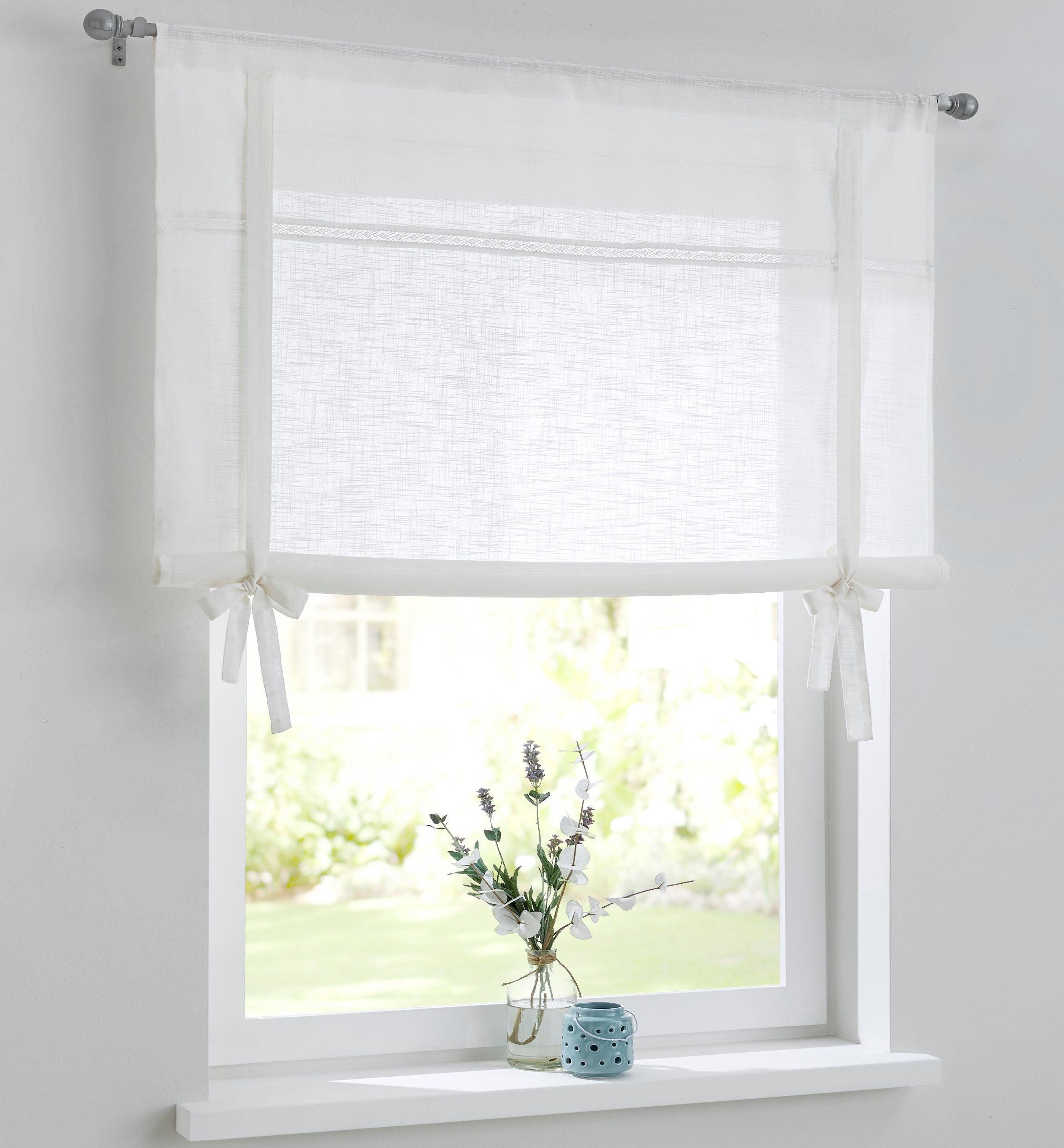 Hinweis Raffung | Die Raffung erfolgt mittels Bindebändern und kann auf jeder beliebigen Höhe festgestellt werden. |