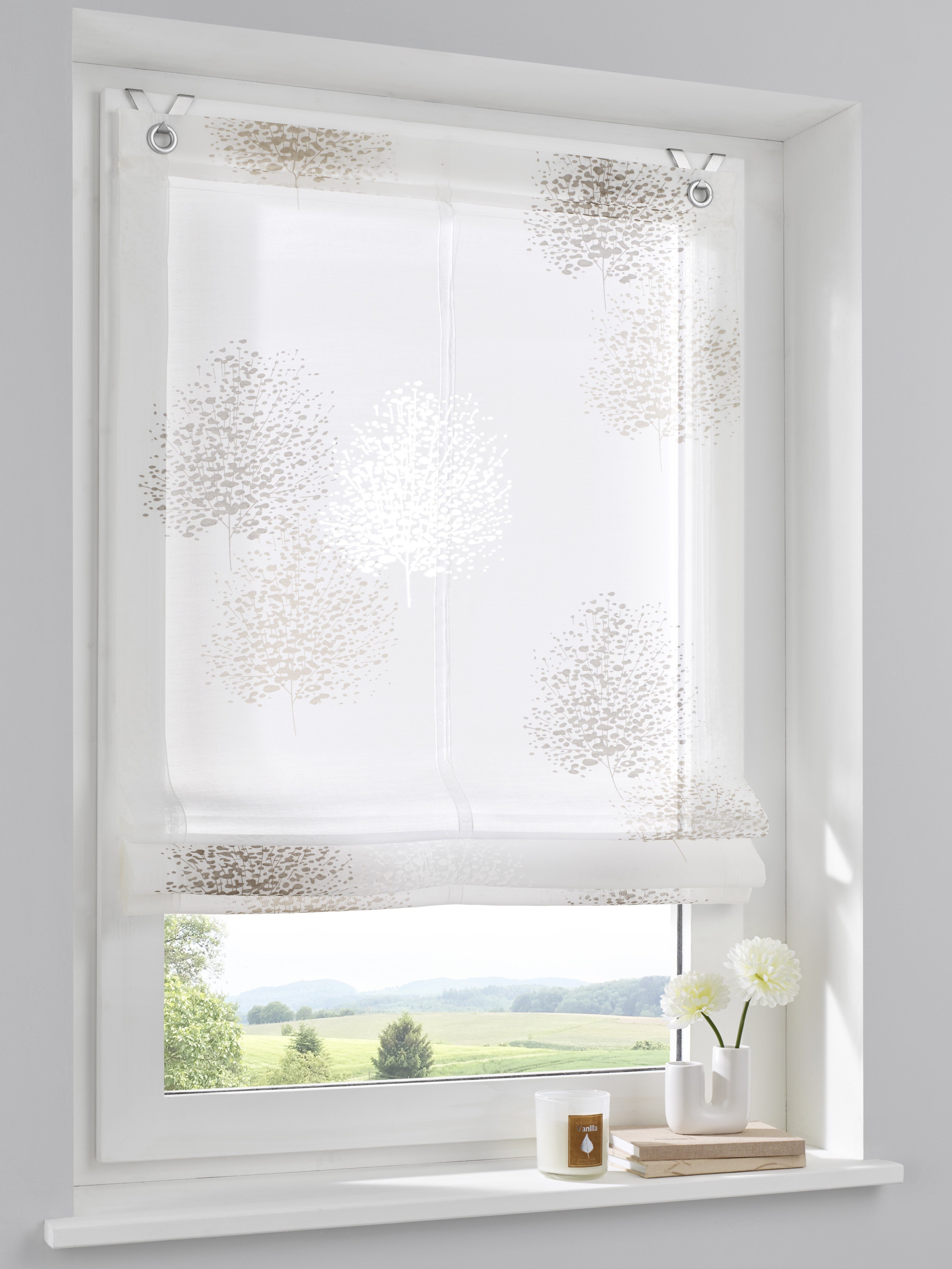 Hinweis Aufhängung | Die mitgelieferten Haken werden in den Fensterrahmen eingehängt und das Rollo an den dekorativen Ösen einfach eingehakt. Geeignet für Fensterflügelstärke zwischen 13 mm und 22 mm. |