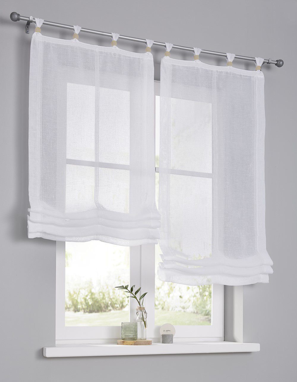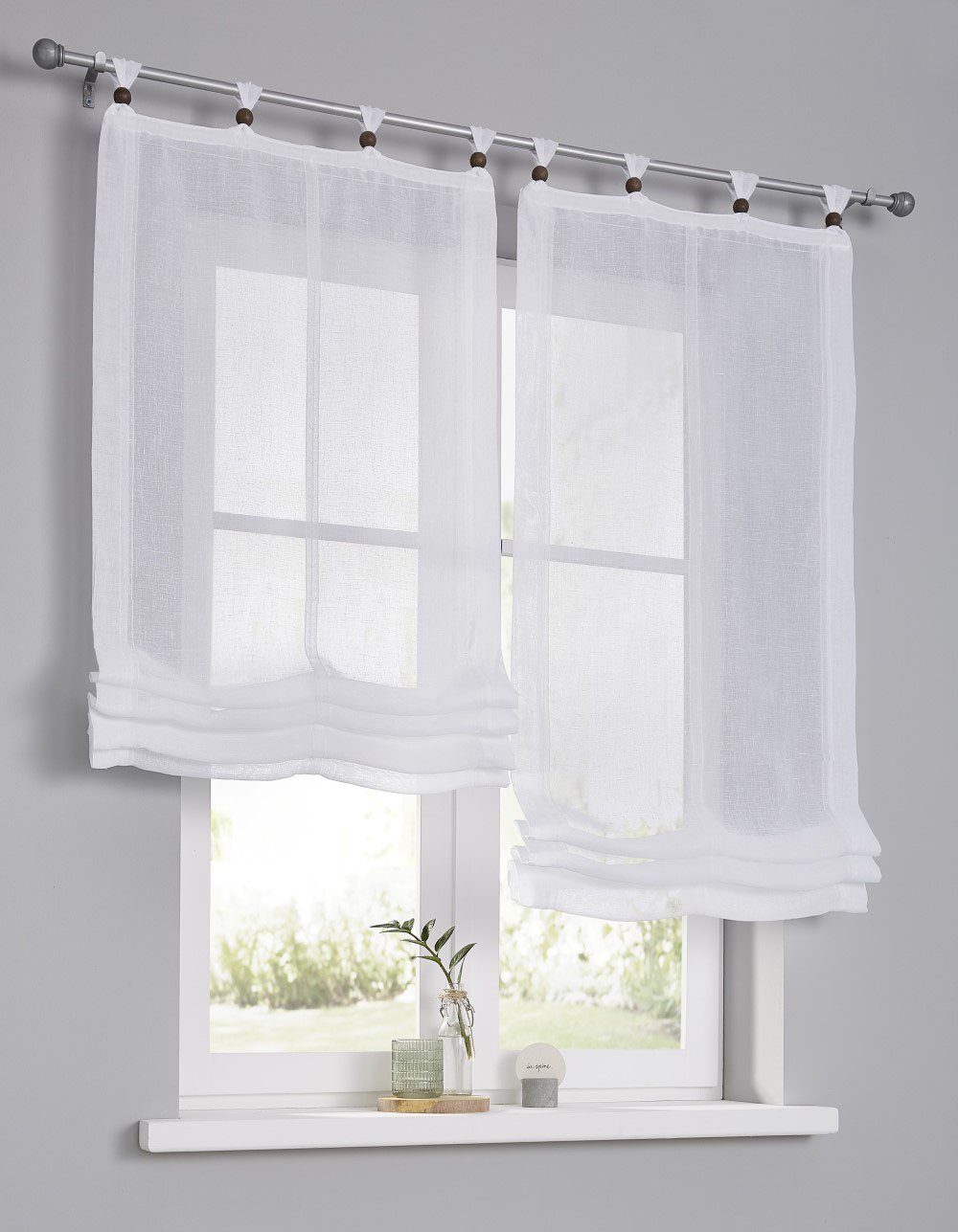 Hinweis Aufhängung | Aufhängung erfolgt mittels Schlaufen an der Gardinenstange. |