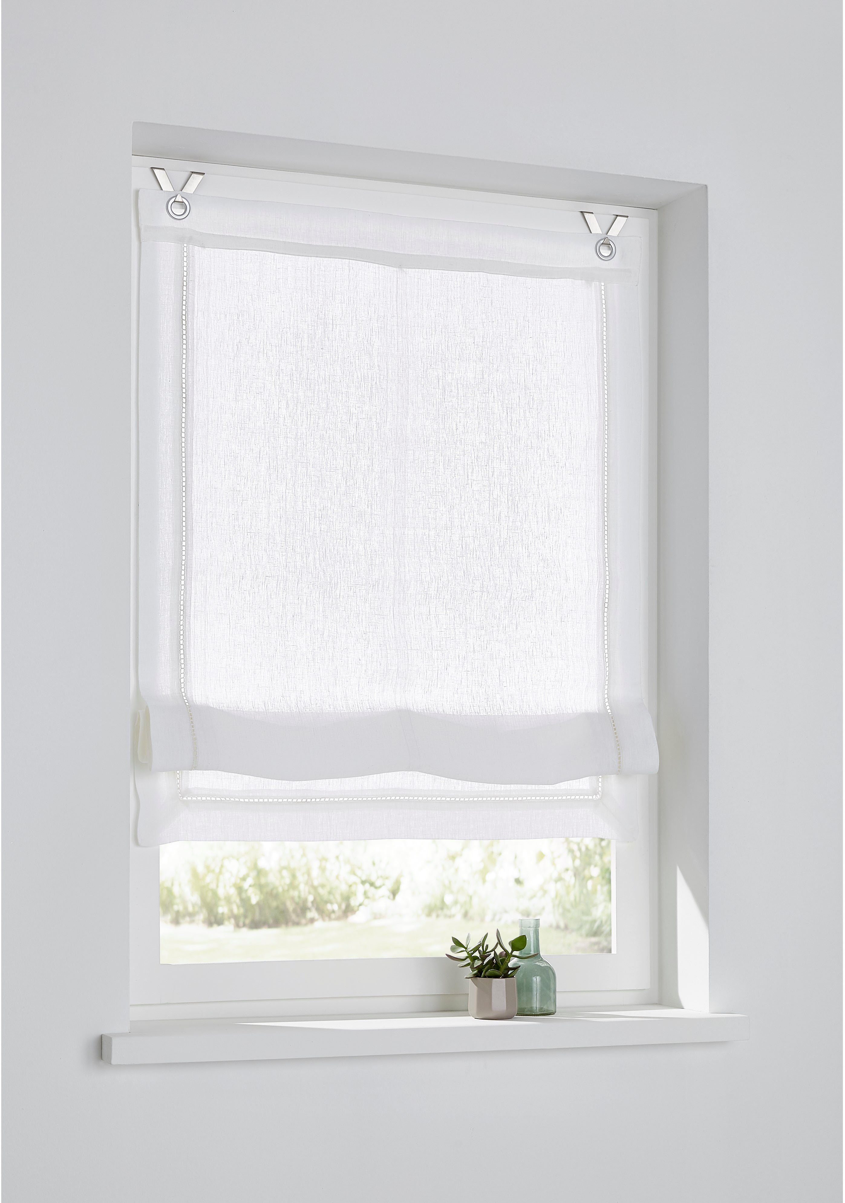 Hinweis Aufhängung | Die mitgelieferten Haken werden in den Fensterrahmen eingehängt und das Rollo an den dekorativen Ösen einfach eingehakt. Geeignet für Fensterflügelstärke zwischen 13 mm und 22 mm. |
