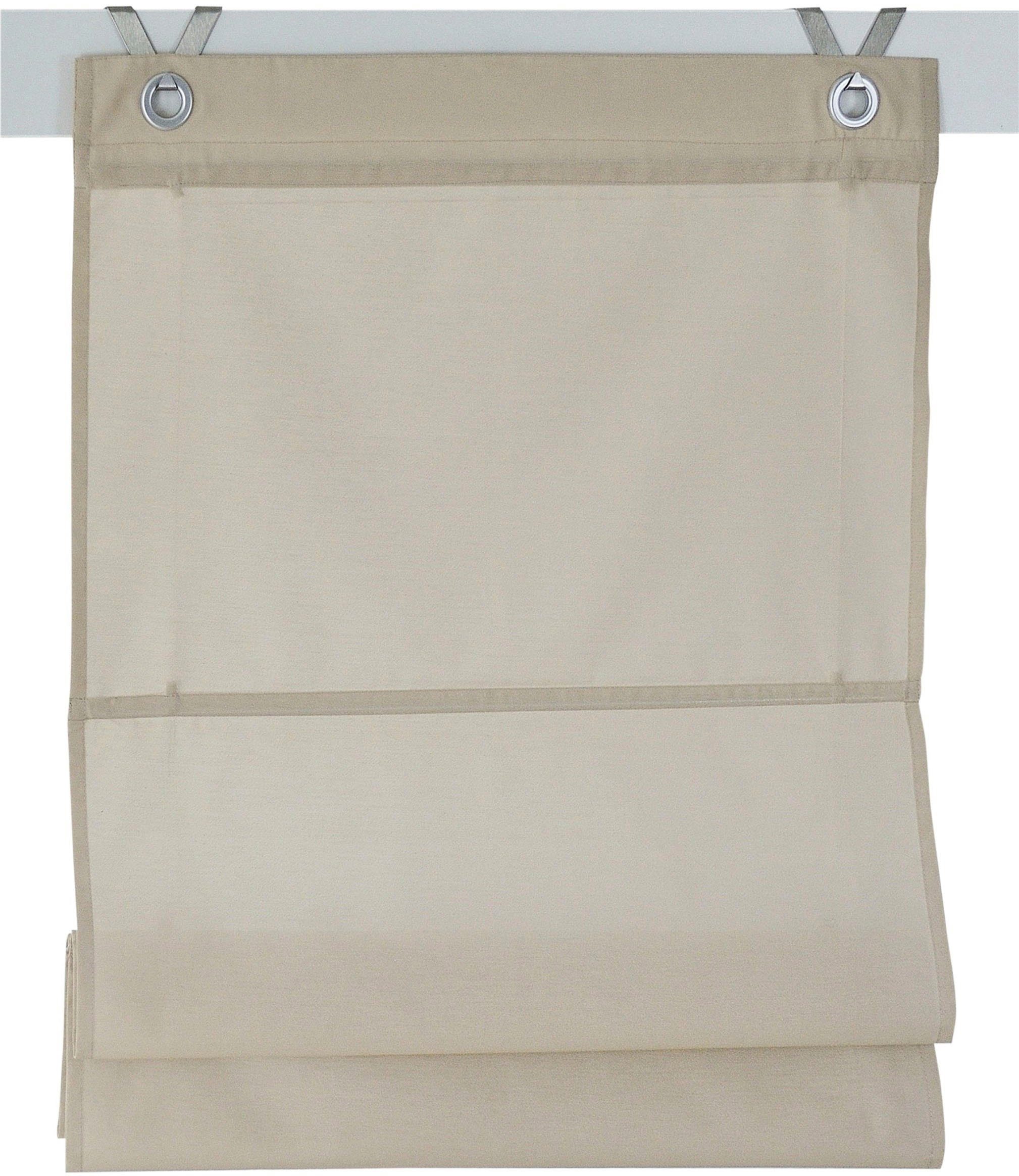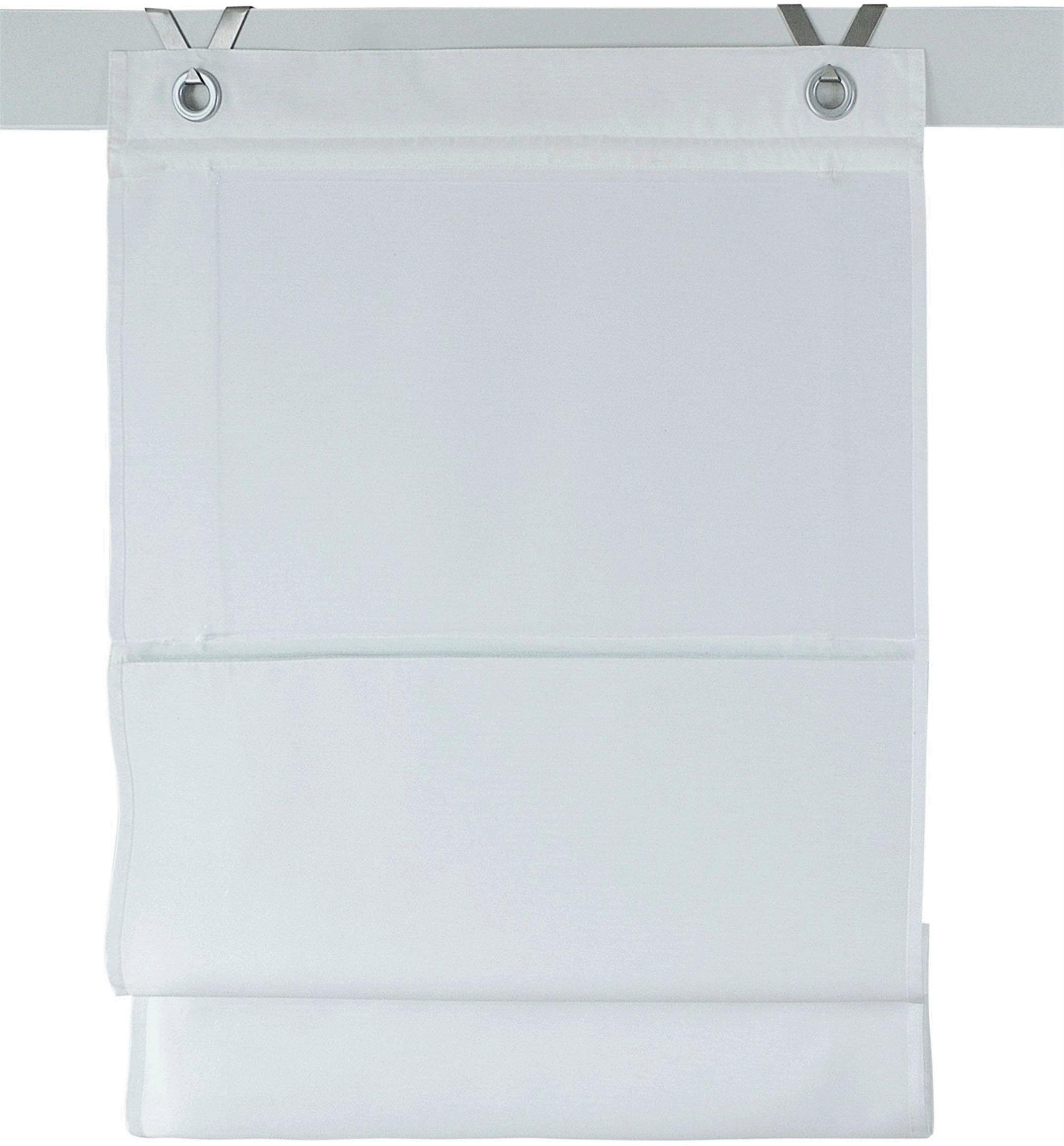 Hinweis Aufhängung | Die mitgelieferten Haken werden in den Fensterrahmen eingehängt und das Rollo an den dekorativen Ösen einfach eingehakt. Geeignet für Fensterflügelstärke zwischen 13 mm und 22 mm. |