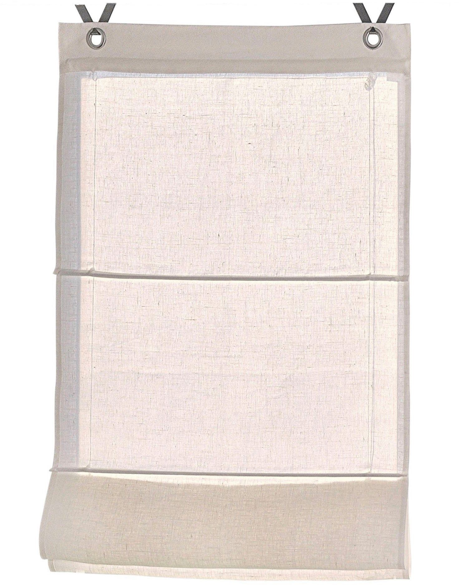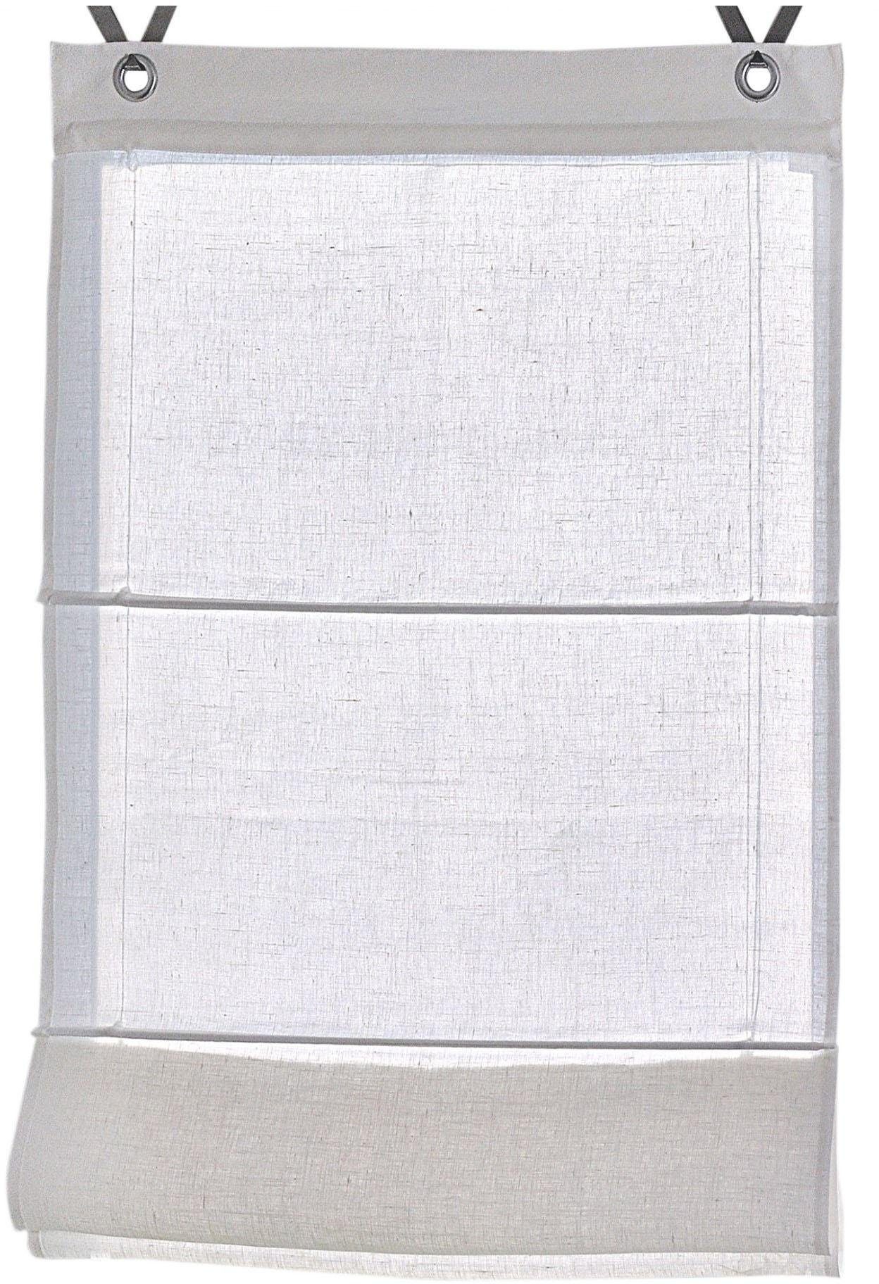 Hinweis Aufhängung | Die mitgelieferten Haken werden in den Fensterrahmen eingehängt und das Rollo an den dekorativen Ösen einfach eingehakt. Geeignet für Fensterflügelstärke zwischen 13 mm und 22 mm. |