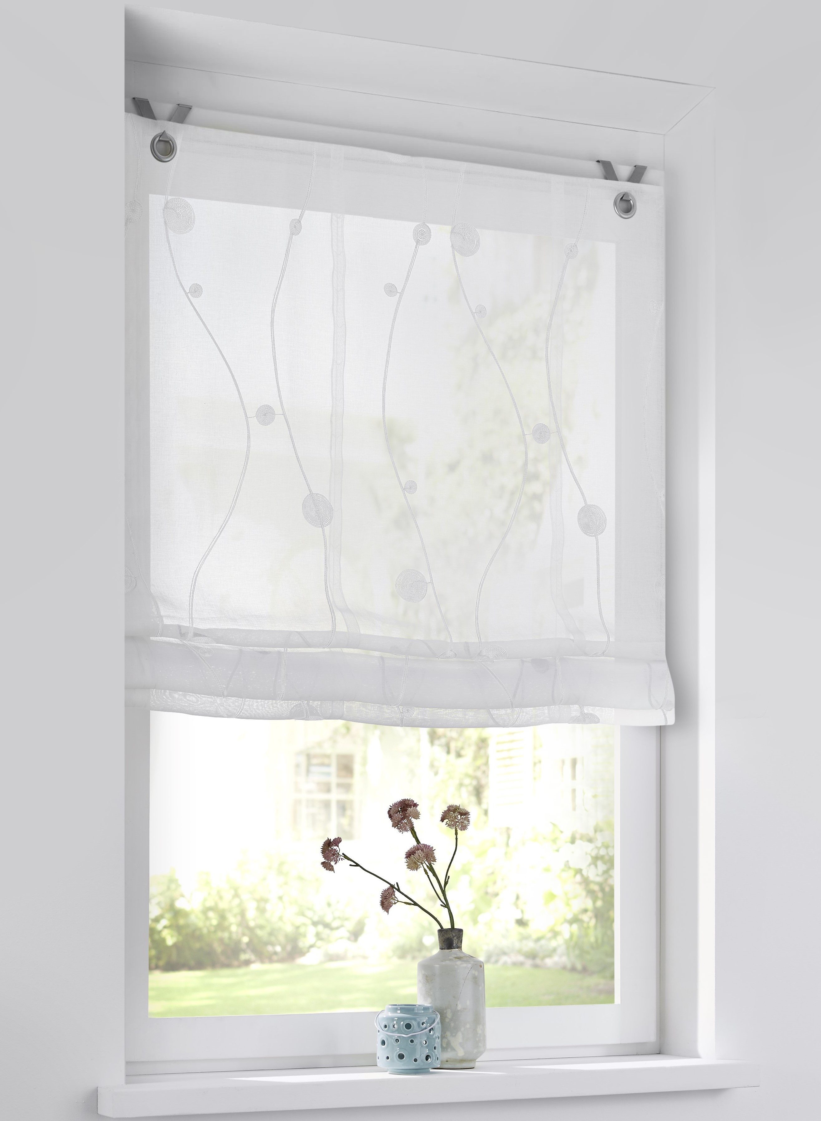 Hinweis Aufhängung | Die mitgelieferten Halterungen werden in den Fensterrahmen eingehängt und das Rollo an den dekorativen Ösen einfach eingehakt. Geeignet für Fensterflügelstärke zwischen 13 mm und 19 mm. |