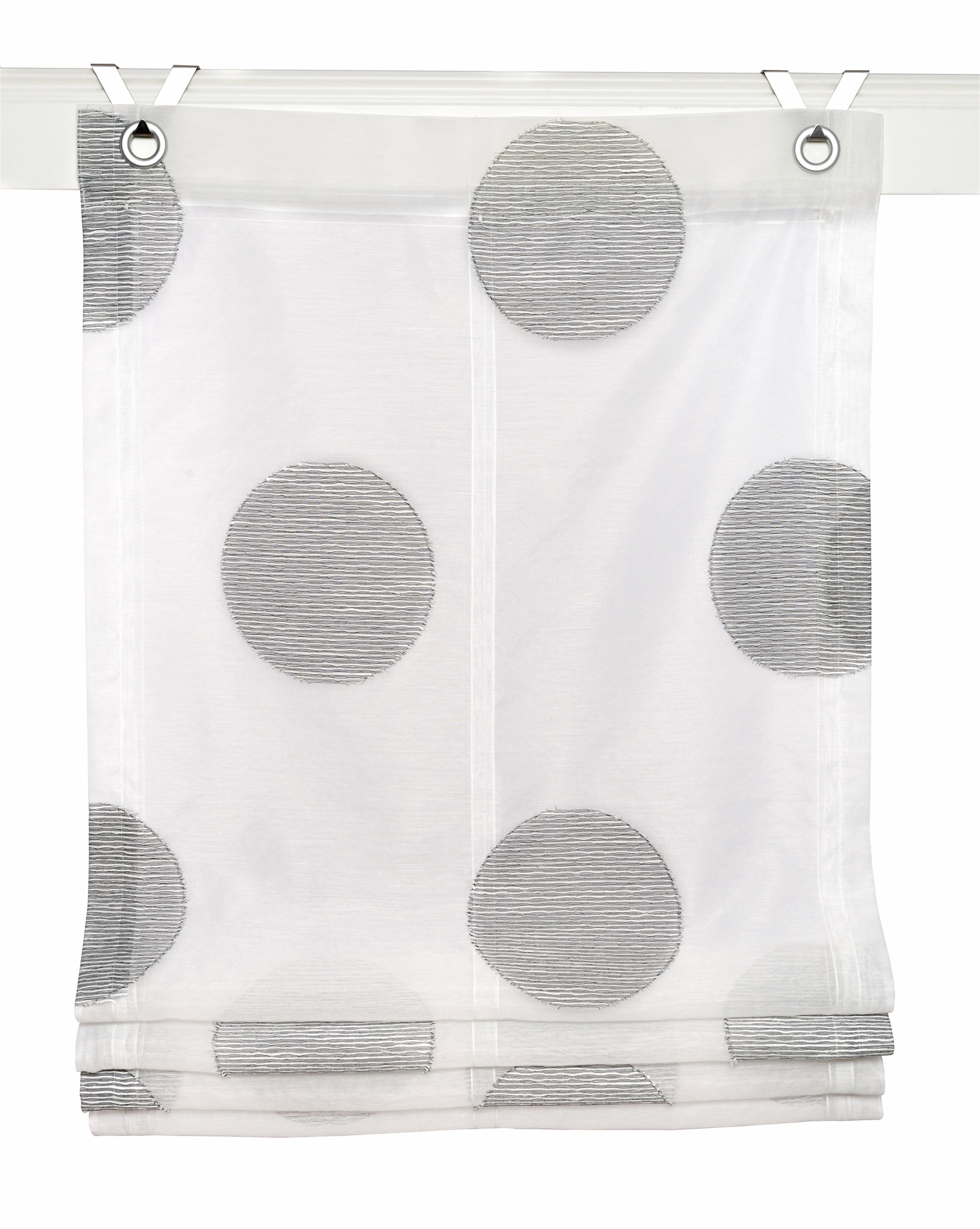 Hinweis Raffung | Raffung erfolgt mittels seitlicher Zugschnüre und kann auf jeder beliebigen Höhe festgestellt werden. Hierzu wird ein Schnurfeststeller mit Schraube und Dübel in der Wand montiert. |