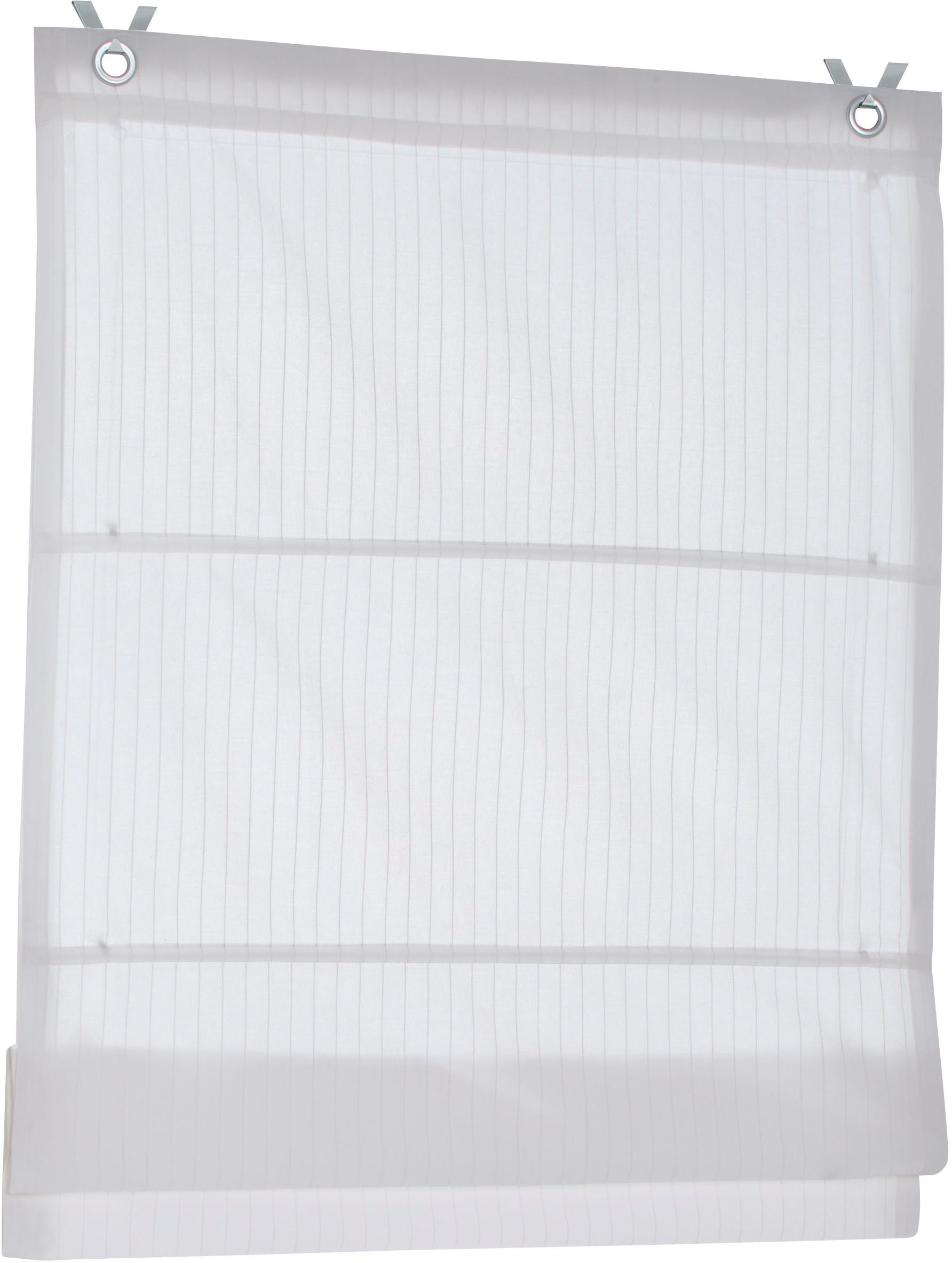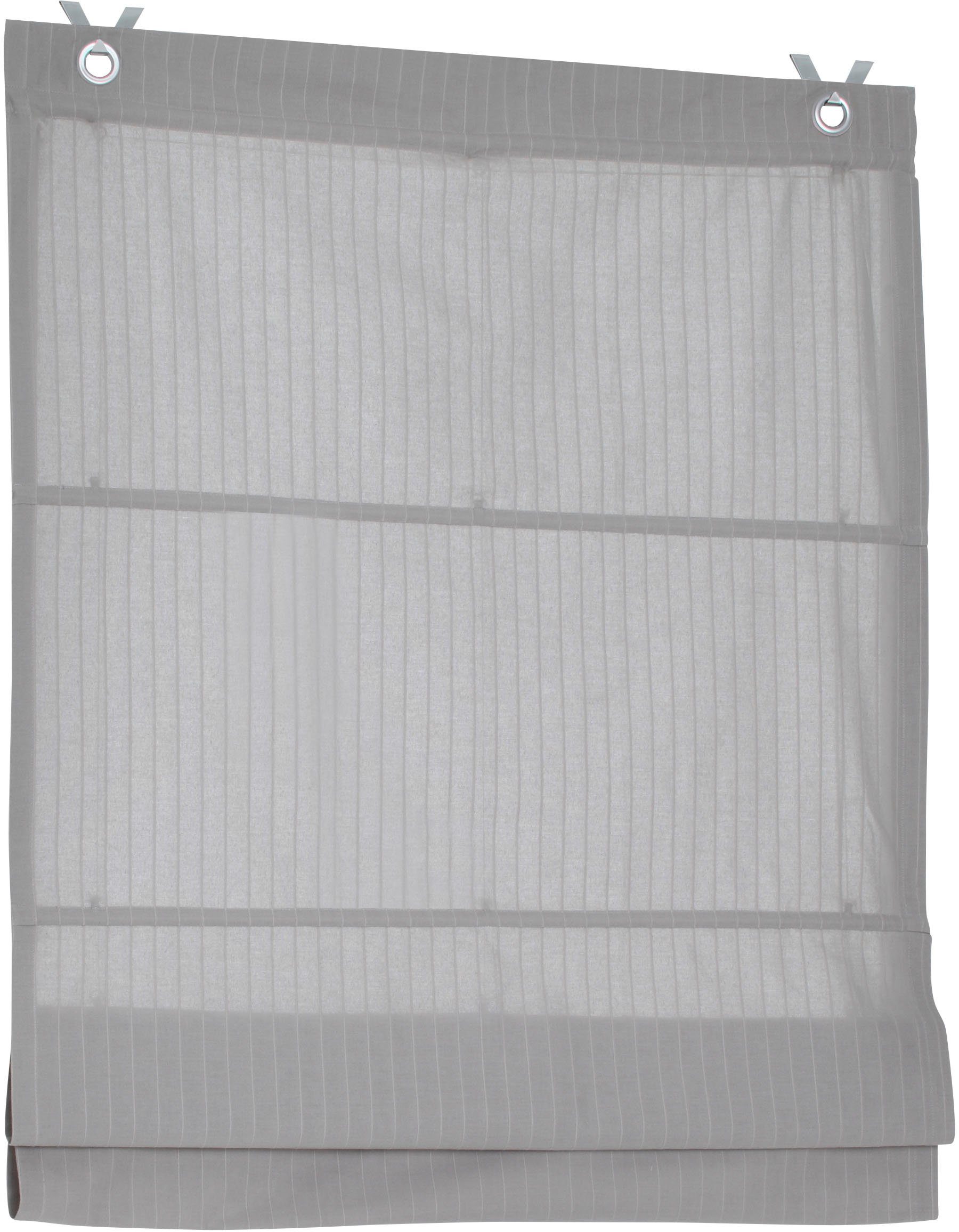 Hinweis Aufhängung | Die mitgelieferten Haken werden in den Fensterrahmen eingehängt und das Rollo an den dekorativen Ösen einfach eingehakt. Geeignet für Fensterflügelstärke zwischen 13 mm und 22 mm. |