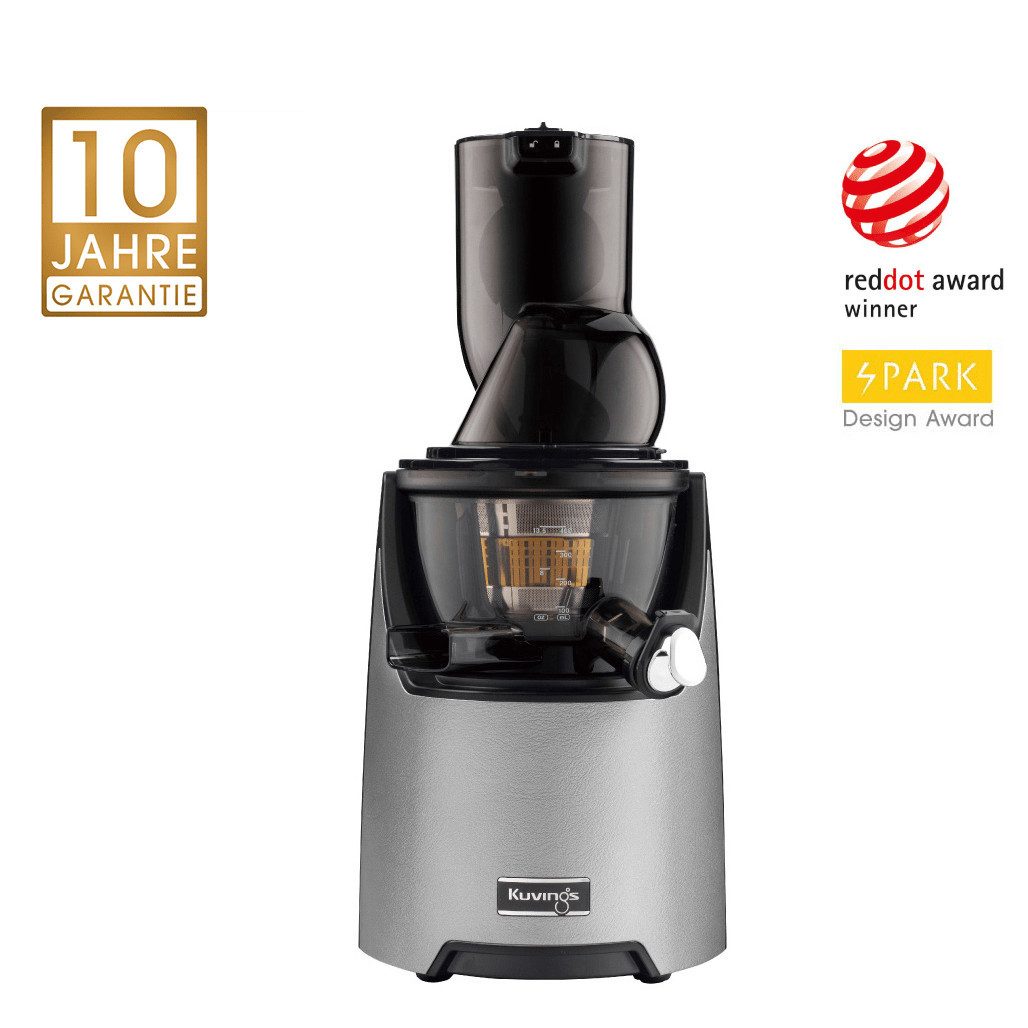 Впередe Vorteile | With the Kuvings Slow Juicer and its slow rotating technology, you can make 100% natural and cold-pressed juices, smoothies and plant drinks with maximum nutrients. The new O-shaped flip gate is wider than that of previous models. It enables easy and practical juicing. The additional smoothie and sorbet filters enable a 3 in 1 multifunctional device. The lid has been improved by extending the mounting point from 3 to 4 points, making the system stronger and more stable. The outlet opening for pulp is wider than in previous models, so that fine residues can be easily removed. Kuvings has won numerous international design awards such as the Red Design Award, iF Design Award, Spark Design Award. A matching citrus press attachment is available separately. |