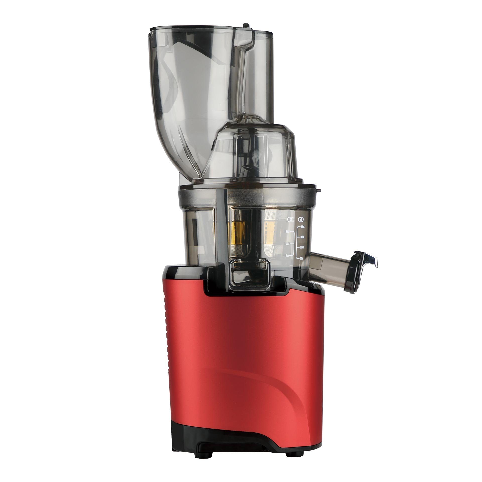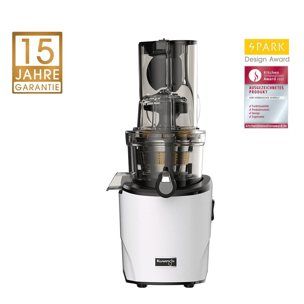 Top-Features | Winner of the Kitchen Innovation Award New Multiple filling openings AUTOMATIC CUTTING FUNCTION STRONGER & MORE POWERFUL MOTOR IMPROVED JUICE AUGER /Up to 15% finer juice than before Easy to clean 10 year guarantee on the motor Easier to clean: Rotating cleaning brush Safety lock & cooling system VERSATILE: Suitable for preparing juices, sorbets, nut milk, milkshakes, baby food, nut butter and smoothies. BPA free Tritan extension for citrus press Robust funnel Smart Cap QUIET: Thanks to the integrated low-noise design with a special decelerating motor, the product generates less noise and vibrations. More juice, less pulp: Expect up to 35% more juice and less pulp than all other commercial juicers. |