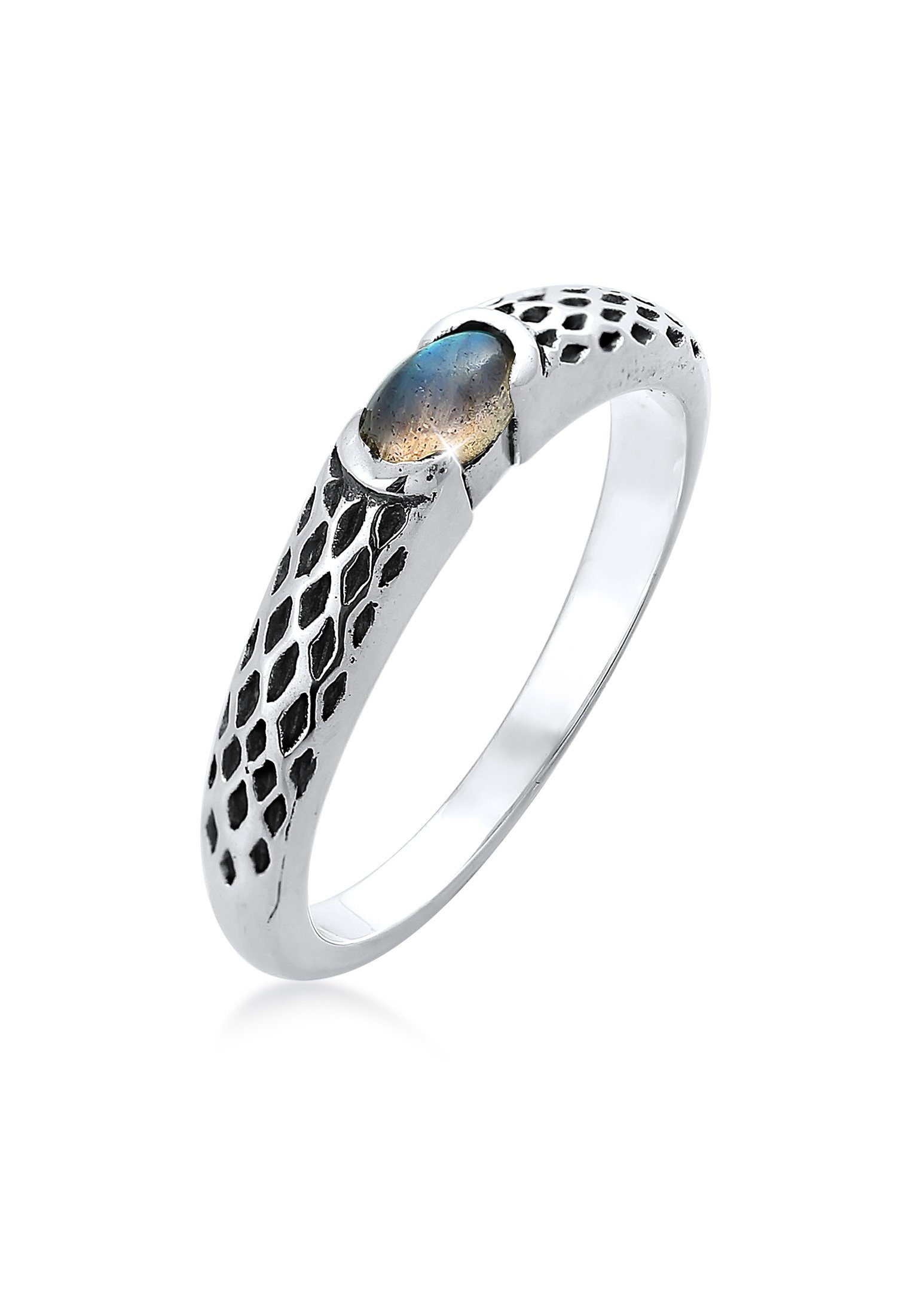 Ein Herrenring im modernen Vintage Used Look, für den modebewussten Mann. Der wunderschöne oval geformte Labradorit Stein, wird durch eine kunstvoll gestaltete Ringschiene und Steinfassung in Szene gesetzt. Polierte und oxidierte Kontraste, verleihen diesem Schmuckstück eine reizvolle Haptik. Die besondere Farbintensität ist ein Blickfang an jeder Männer Hand.