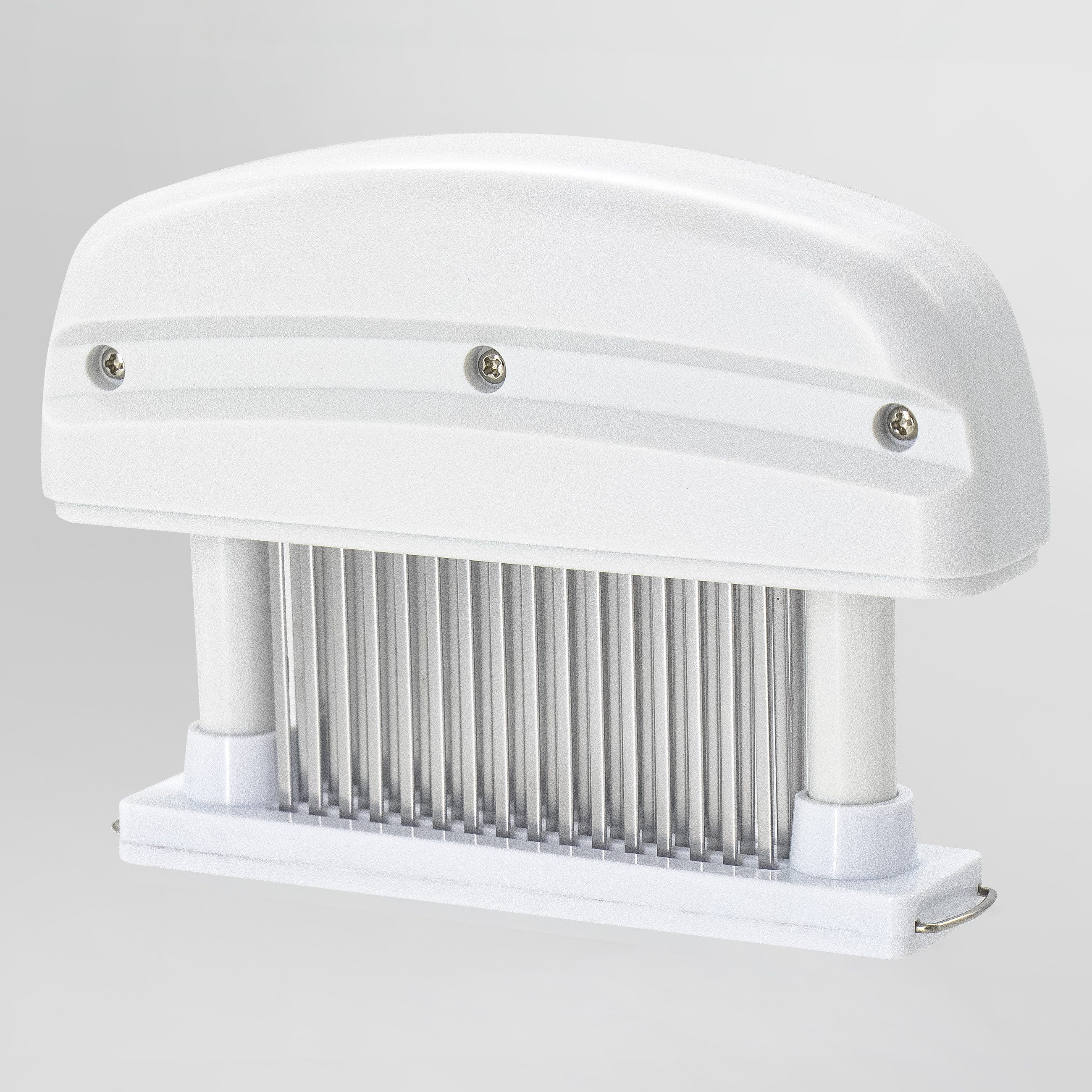 Drücken Sie einfach mit dem Gerät auf das Fleisch, um drei Klingenreihen zu aktivieren, die tief in das Fleisch eindringen und Bindegewebe aufschneiden.
