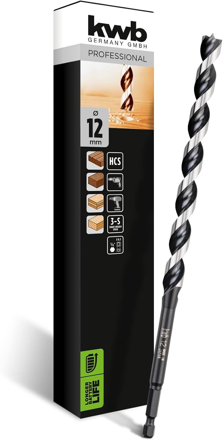 • SUPERSCHARFER SPITZENANSCHLIFF: Dank des superscharfen Spitzenanschliffs und der Hauptschneide gelingt mit dem kwb Schlangenbohrer ein absolut ausrissfreies Bohren in allen Hart- und Weichhölzern.