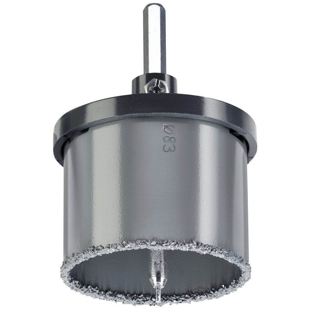 Lochsäge, hartmetallbestreut, komplett mit Trägerteller und Zentrierbohrer, Präzisionsrohr, bestreut mit spezial Hartmetall-Split, hochtemperaturgelötet, für Gasbeton, Mauerwerk, Fliesen, Keramik, Naturstein, Leichtbauplatten, Gipskarton und Kunststoff, für Installationsarbeiten, wie z.B. Steckdosen-, Verteilerdoseneinbau und Rohrverlegung
