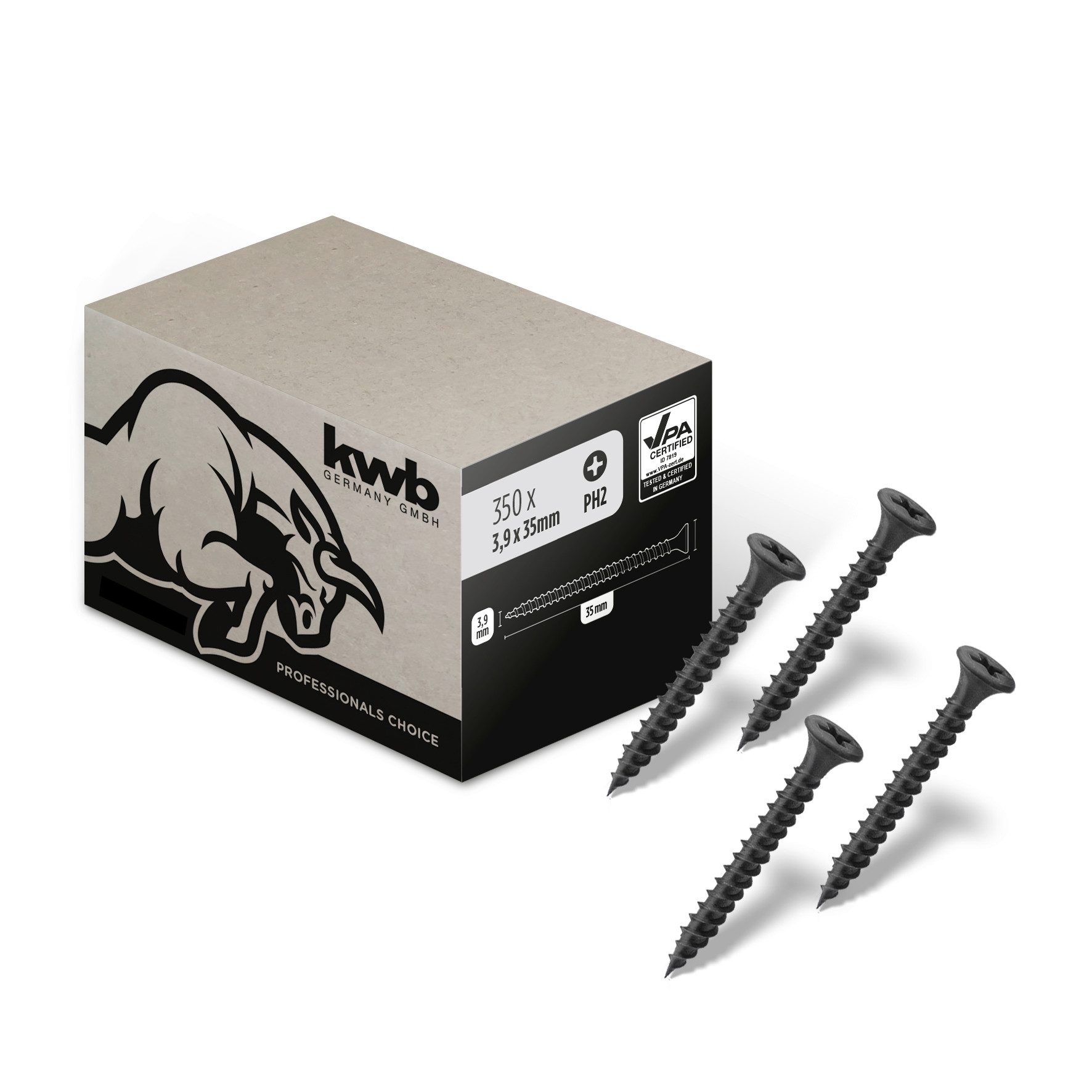 Die Trockenbauschrauben sind die optimale Wahl für Bau- und Renovierungsprojekte, bei denen Geschwindigkeit, Effizienz und Langlebigkeit von entscheidender Bedeutung sind. Mit verschiedenen Maßen, einschließlich 25 mm / 35 mm / 45 mm Длина sowie einem Durchmesser von 3,9 mm, bieten sie vielseitige Möglichkeiten, das Projekt erfolgreich abzuschließen. Hergestellt aus hochwertigem Stahl C1022, gewährleisten die Trockenbauschrauben außergewöhnliche Stabilität und Langlebigkeit. Es kann sich darauf verlassen werden, dass die Befestigungen zuverlässig bleiben und sich nicht verschlechtern. Die scharfe Spitze erleichtert das mühelose Befestigen von Gipskartonplatten an Metallprofilen mit bis zu 0,6 mm Dicke, was Zeit, Mühe und Energie spart. Die schwarze Phosphatbeschichtung bietet effektiven Korrosionsschutz und sichert eine langanhaltende und zuverlässige Anwendung. Dank des Feingewindes minimieren die Trockenbauschrauben das Risiko von Lockerungen und bieten langfristige Zuverlässigkeit. Der Trompetenkopf und der Antrieb PH2 Kreuzschlitz ermöglichen eine mühelose und schnelle Einschrauben sowie ein bündiges Einsetzen in das Material. Dies führt zu einer sauberen und professionellen Oberfläche. Bei Bau- oder Renovierungsprojekten, in denen Geschwindigkeit, Effizienz und Langlebigkeit von großer Bedeutung sind, bieten die kwb Trockenbauschrauben Qualität, Leistung und Zuverlässigkeit.