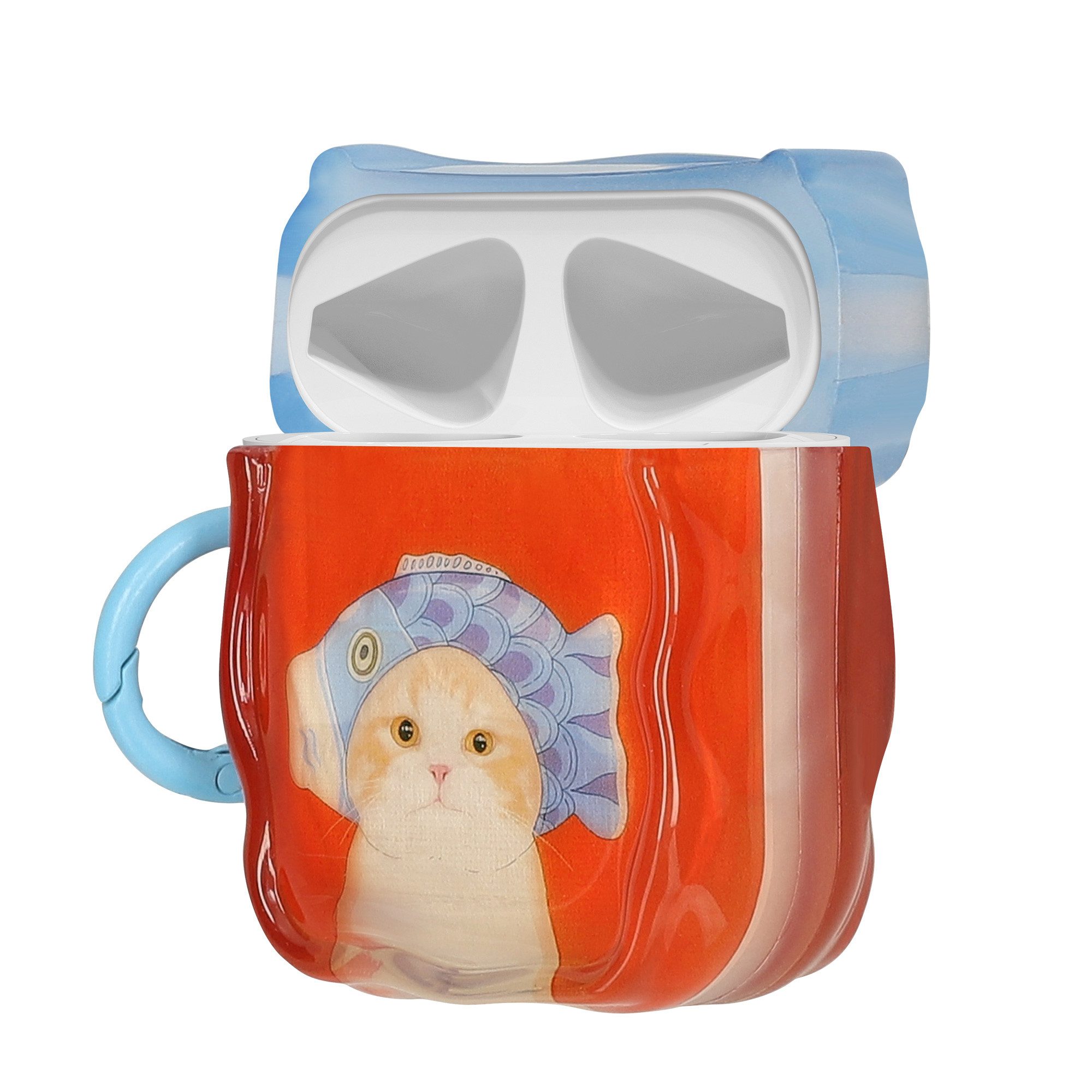 Besondere Merkmale | Hülle mit Karabiner - Headphones Case - Katze mit Fischhut Design |