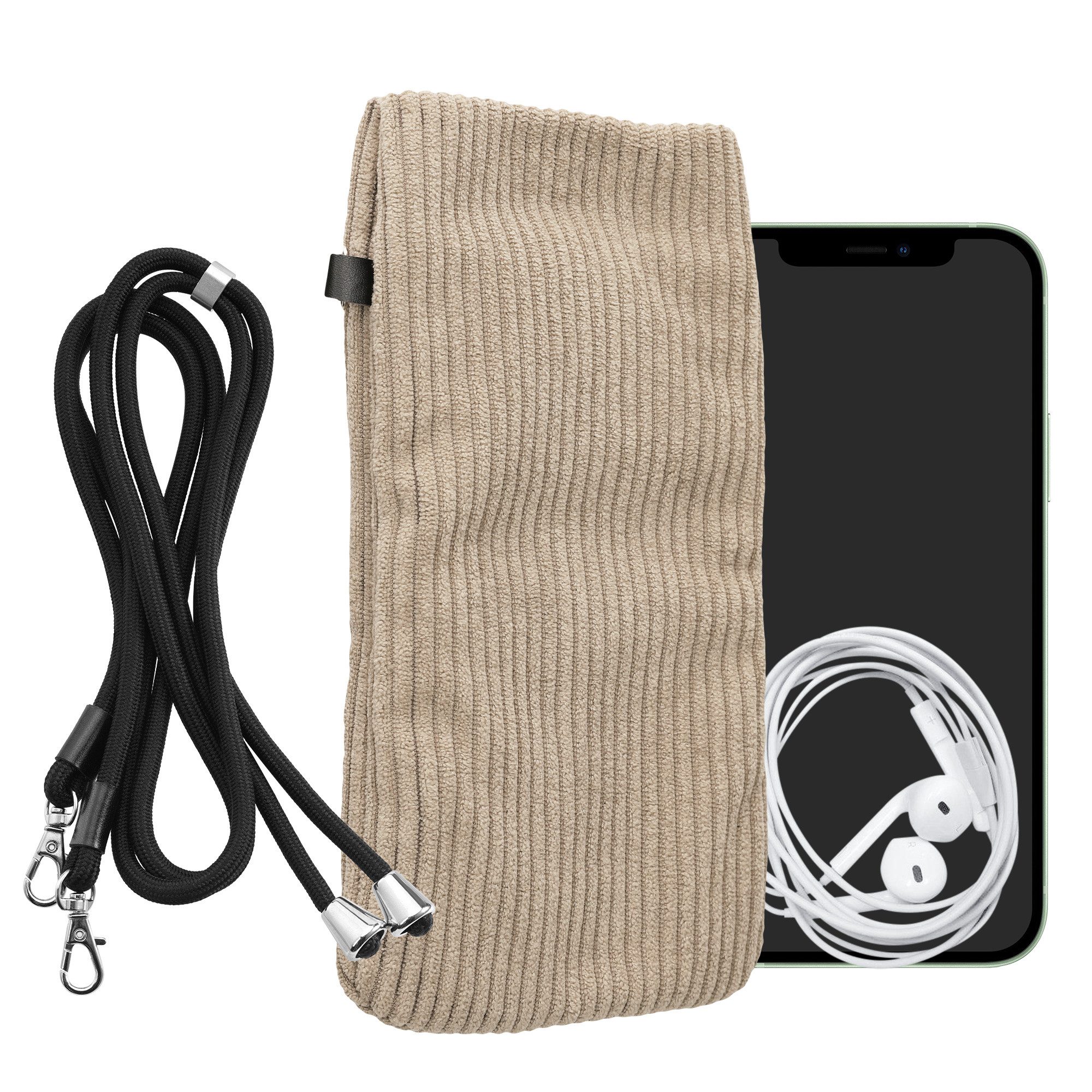 Besondere Merkmale | Cord Handy Hülle Creme mit Kordel - Handy Tasche |