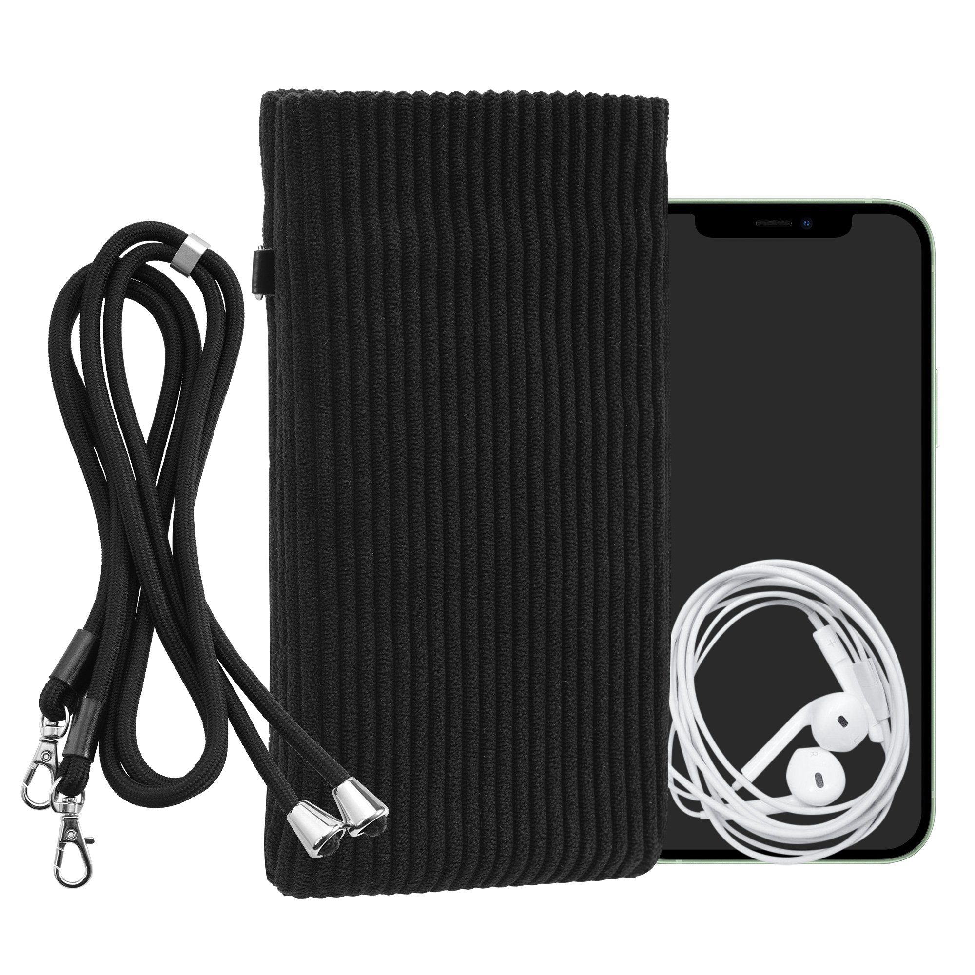 Besondere Merkmale | Cord Handy Hülle Schwarz mit Kordel - Handy Tasche |