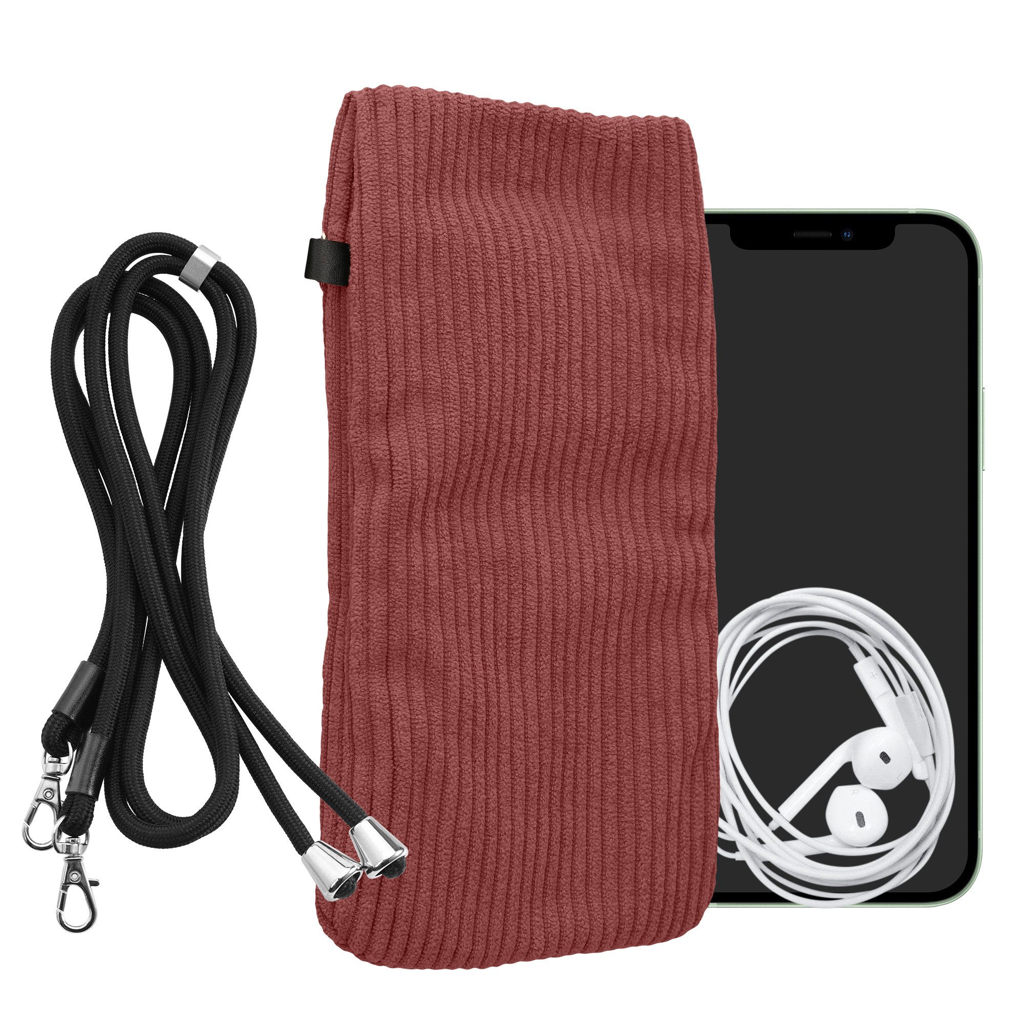 Besondere Merkmale | Cord Handy Hülle Dark Rose mit Kordel - Handy Tasche |