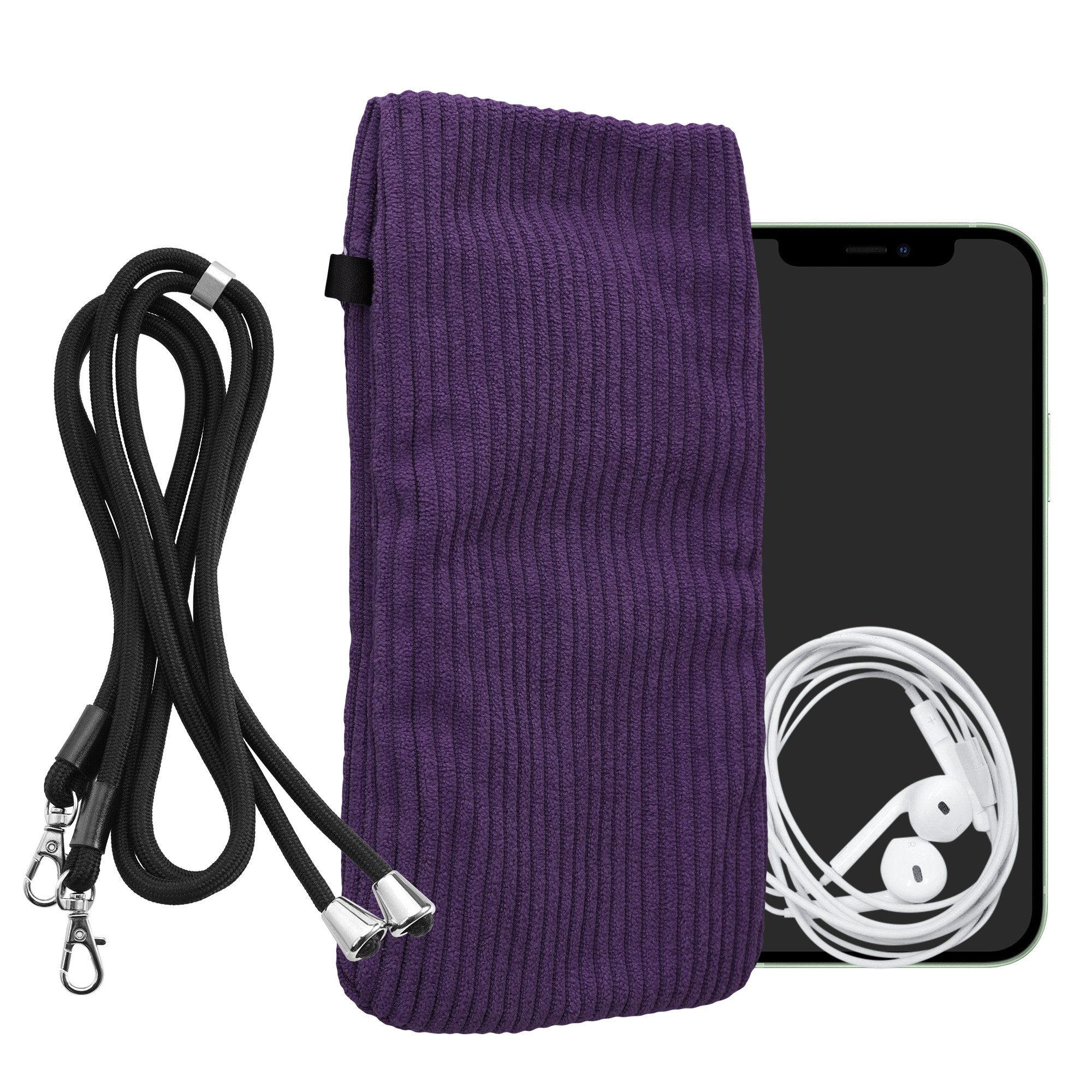 Besondere Merkmale | Cord Handy Hülle Violett mit Kordel - Handy Tasche |