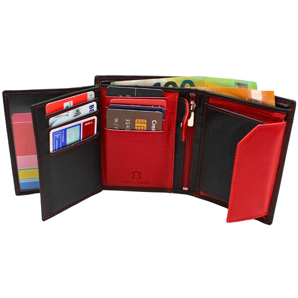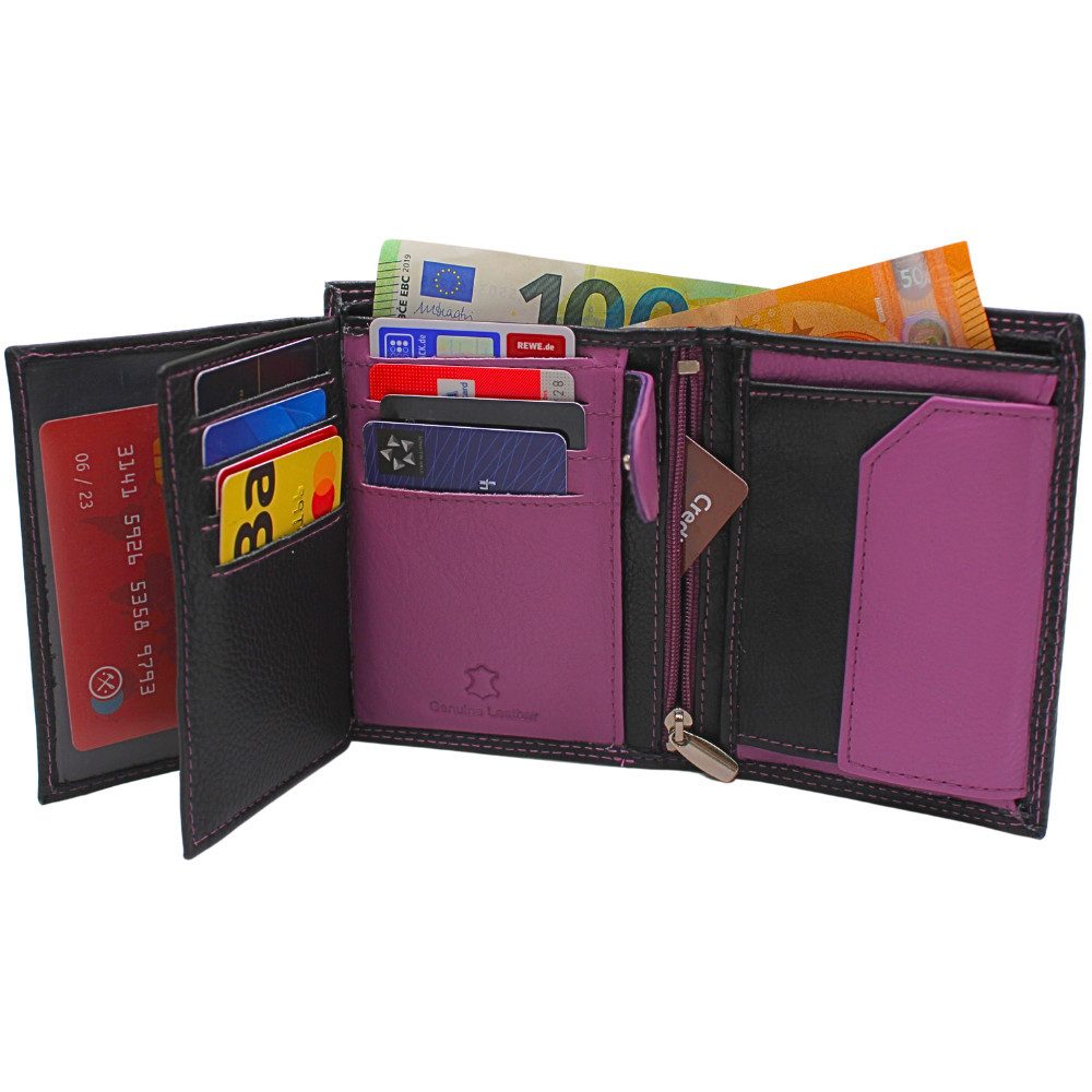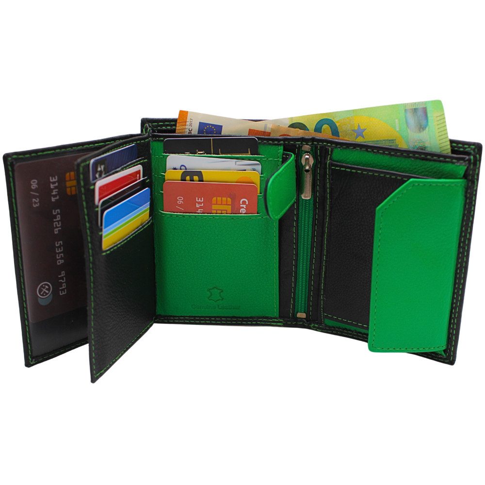 Ausstattung | Reißverschlussfach, Druckknopffach, Münzfach, Klarsichtfach, Kartenfach, Geheimfach, Scheinfach |