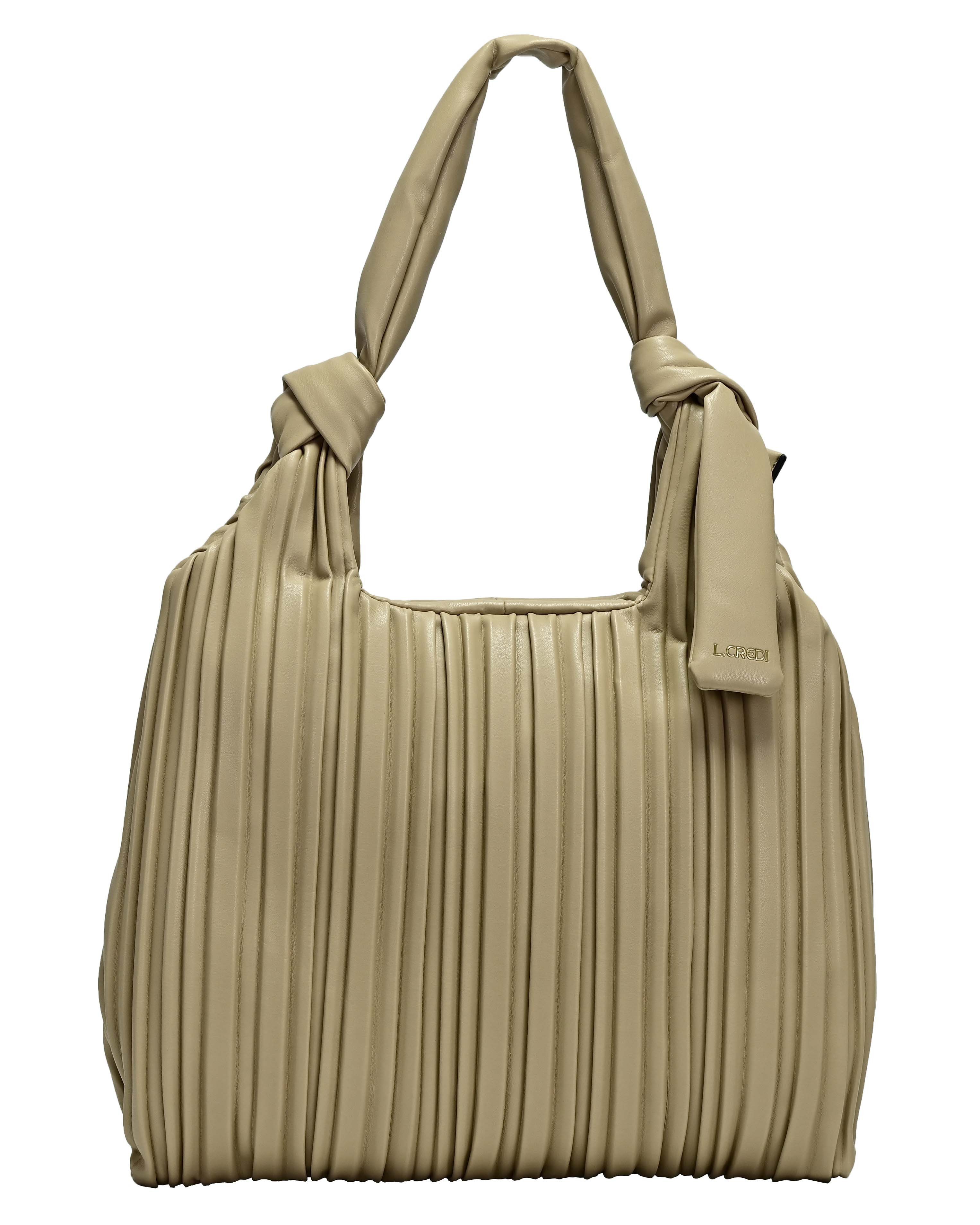 Die JESSIE Schultertasche ist ein absoluter Hingucker und setzt mit ihrer einzigartigen Plissee-Optik und der weich gerundeten Form sofort modische Akzente. Gefertigt aus einem geschmeidig weichen Kunstleder, überzeugt sie nicht nur optisch, sondern liegt auch angenehm weich in der Hand. Ihr geräumiges Hauptfach, sicher verschlossen mit einem Reißverschluss, bietet viel Platz für alle täglichen Essentials. Im Inneren erwartet Sie ein durchdachtes Organisationssystem: Verstauen Sie Ihre Wertsachen sicher im Reißverschlussfach, sortieren Sie Kleinkram in den beiden Steckfächern und halten Sie Stifte griffbereit in den zwei Stifthaltern. Das elegante Design-Futter "L.Credi" setzt dabei einen stylischen Kontrast. Abgerundet wird das elegante Design durch einen glänzenden Logo-Detail an der Gurtschiene. Der Henkel in Oberarmweite ermöglicht einen komfortablen Tragekomfort. Die JESSIE ist der perfekte Begleiter für den Stadtbummel, das Office oder einen Abendausflug – schick, praktisch und von makellosem Stil. Produktdetails im Überblick: Markantes Design: Originelles Plissee und weiche, runde Form. Hochwertiges Material: Weiches, glattes Kunstleder (Synthetik) für ein angenehmes Griffgefühl. Perfekte Organisation: Hauptfach mit Reißverschluss, Innen mit Reißverschlussfach, zwei Steckfächern und zwei Stifthaltern. Stilvolles Finish: Glänzendes Logo-Detail am Gurt. Praktisch: Henkel in Oberarmweite für bequemes Tragen. Maße: 38 cm (B) x 29 cm (H) x 10 cm (T) Gewicht: Leichte 500 g Verschluss: Reißverschluss