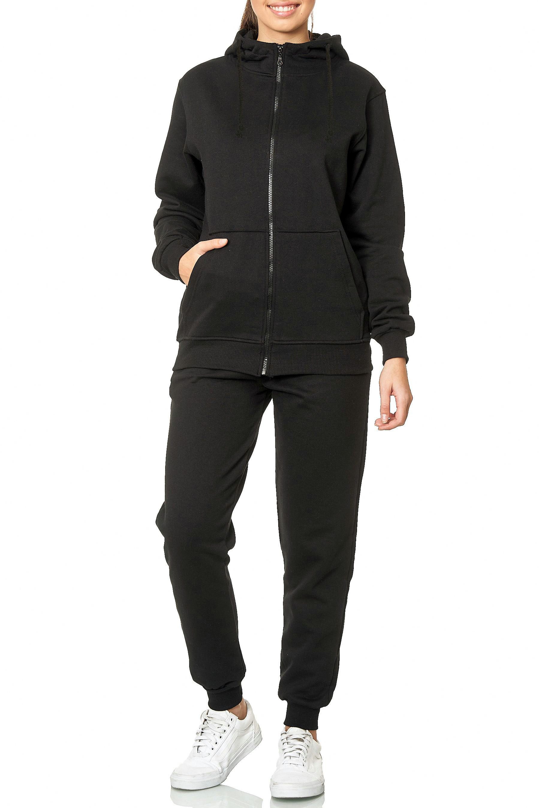 Dieser Freizeitanzug für Damen punktet mit seinem schlichten, einfarbigen Design und ist in vielen modernen Farben erhältlich. Die Kapuze mit Kordelzug sowie die praktischen seitlichen Taschen in Jacke und Hose verleihen dem Sportanzug eine coole und sportliche Optik. Gummibündchen an den Knöcheln runden das Design perfekt ab und sorgen für eine ideale Passform.