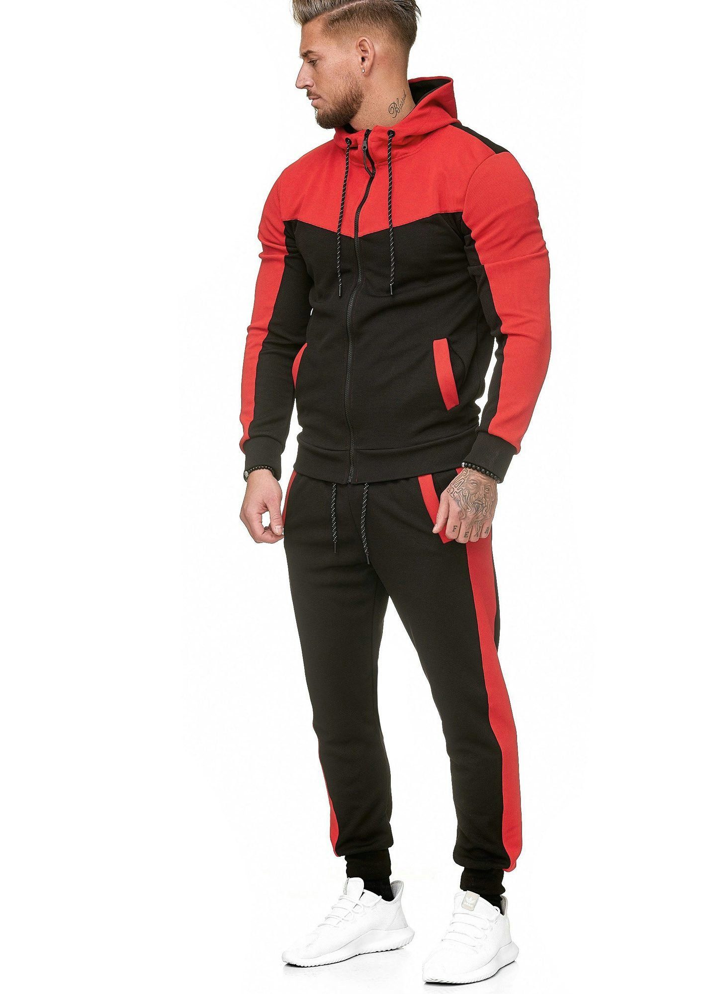 Die coolen Trainingsanzüge sind als Set, bestehend aus einer langen Jogginghose und einer Kapuzenjacke erhältlich.