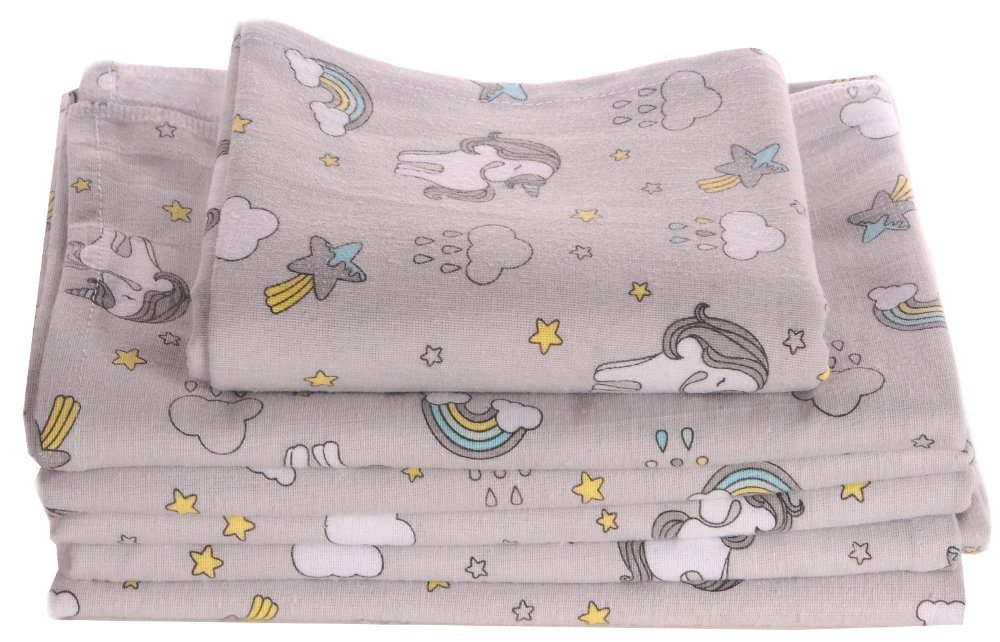 Flanell- Tuch ist speziell für die Bedürfnisse von Babys entworfen und besteht zu 100% aus hochwertiger Baumwolle. Baumwolle ist bekannt für ihre Weichheit, Atmungsaktivität und Hautfreundlichkeit, was sie zu einem idealen Material für die zarte Babyhaut macht. Eltern können sich darauf verlassen, dass dieses Tuch ihrem Kind den höchsten Komfort bietet. Mit einer Размер von ca. 78x120cm ist das Tuch groß genug, um als Wickelunterlage oder als weiche Oberfläche zum Spielen und Ausruhen zu dienen. Es kann auch als dünne Decke verwendet werden, um das Baby in kühleren Momenten warmzuhalten oder als Betttuch, um das Babybettchen gemütlicher zu gestalten. Unser Flanell Tuch ist mit kinderfreundlichen Motiven verziert, die die Fantasie der Kleinen anregen und ihre Aufmerksamkeit erregen. Die liebevoll gestalteten Motive machen das Wickeln und Schlafen zu einem vergnüglichen Erlebnis für Ihr Baby. Die Vielseitigkeit dieses Tuches macht es zu einem unverzichtbaren Accessoire in der Babyausstattung. Ob zuhause, unterwegs, im Kinderwagen oder auf Reisen - dieses Tuch wird Ihnen und Ihrem Baby treue Dienste leisten. Die Pflege des Tuches ist einfach, da es in der Maschine gewaschen werden kann und seine Qualität auch nach mehreren Wäschen erhalten bleibt. Es wurde mit Blick auf Langlebigkeit und Robustheit hergestellt, um den Bedürfnissen des aktiven Babyalltags standzuhalten. Material: 100% Baumwolle