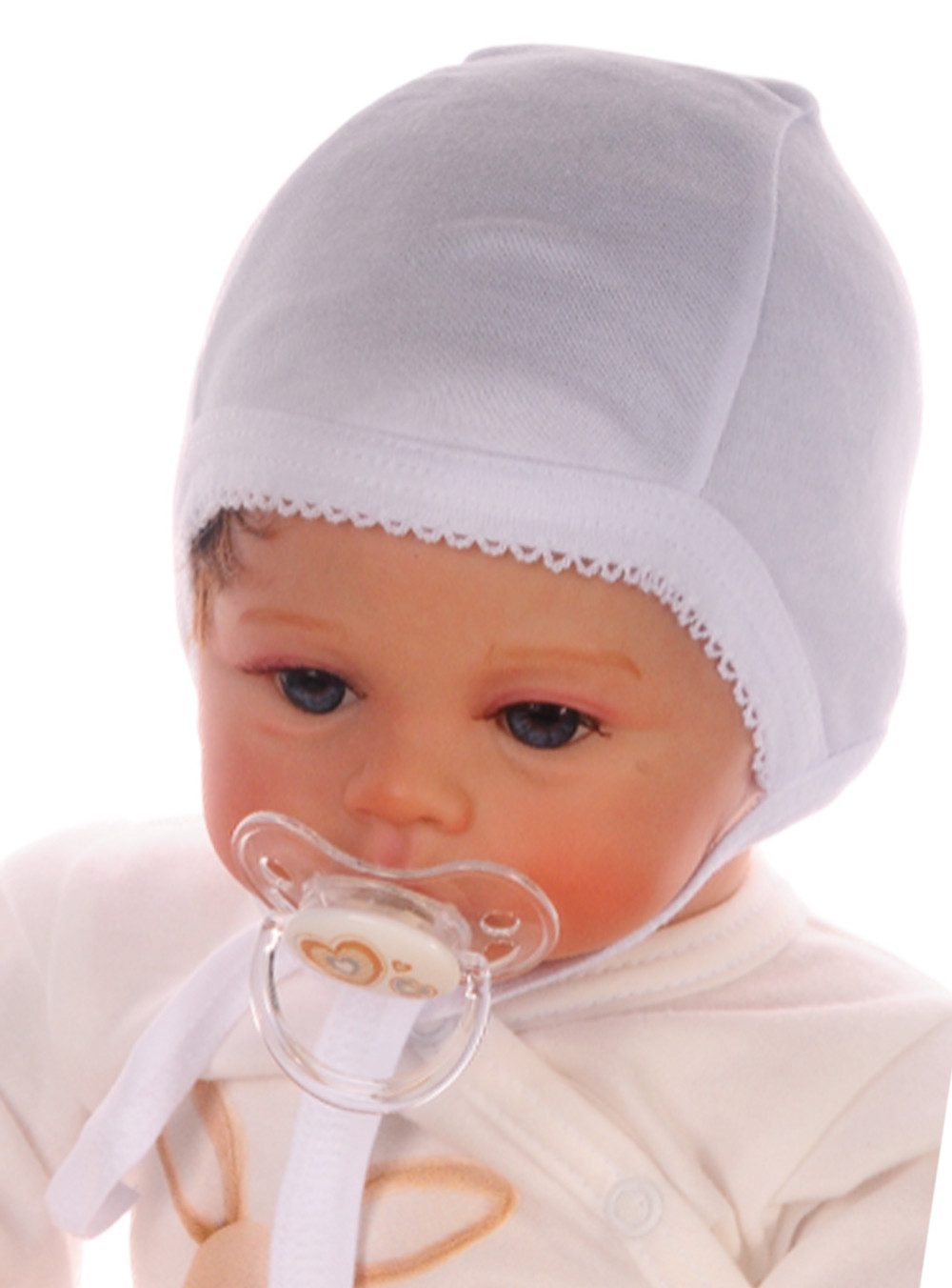 Baby-Mütze / Haube zum Binden Mit Bindebändern für sicheren Halt. Perfekt als kleines Geschenk zur Geburt oder für die Erstausstattung