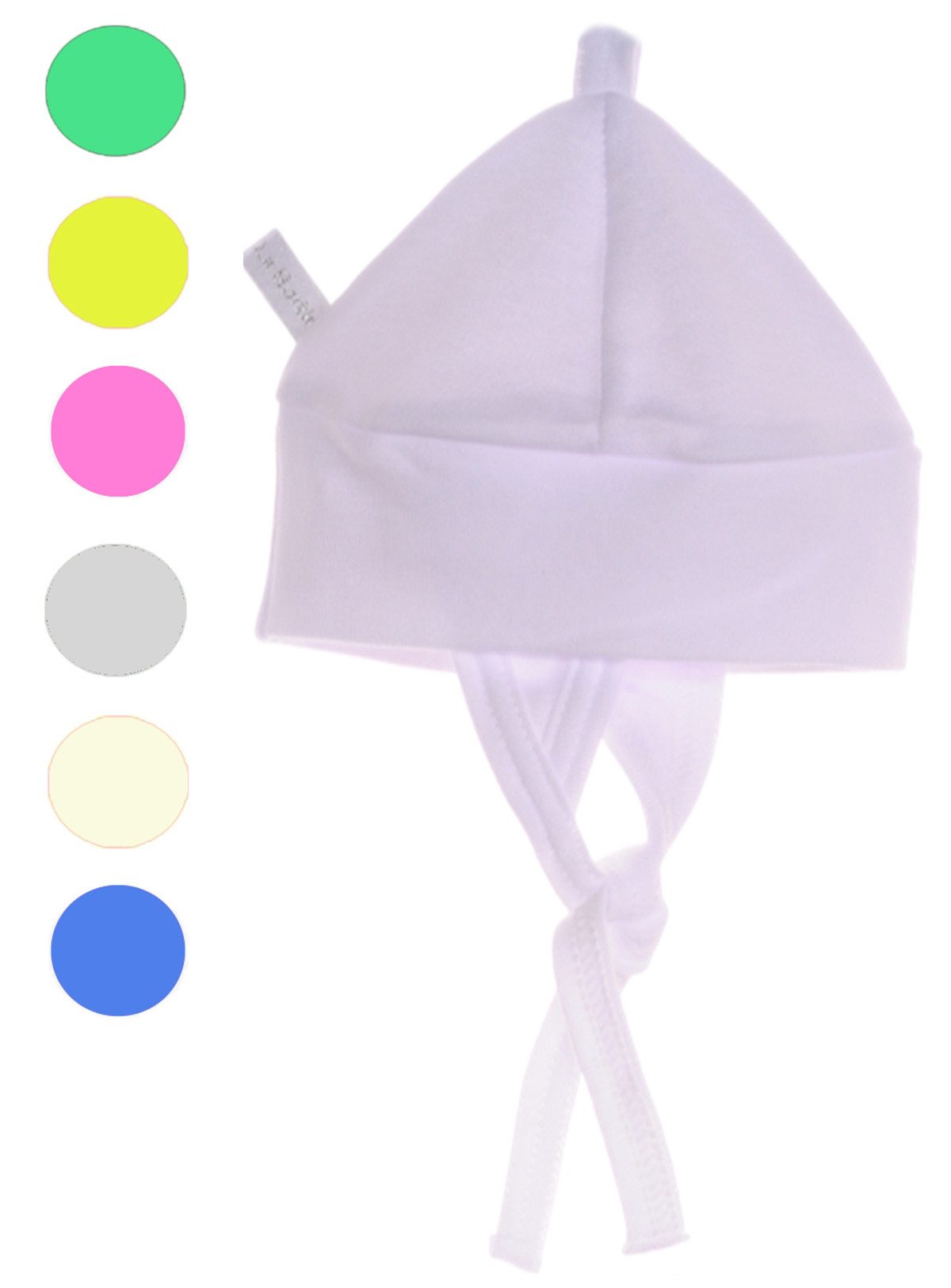 Mütze zum Binden für Neugeborene. Aus reiner Baumwolle gefertigt