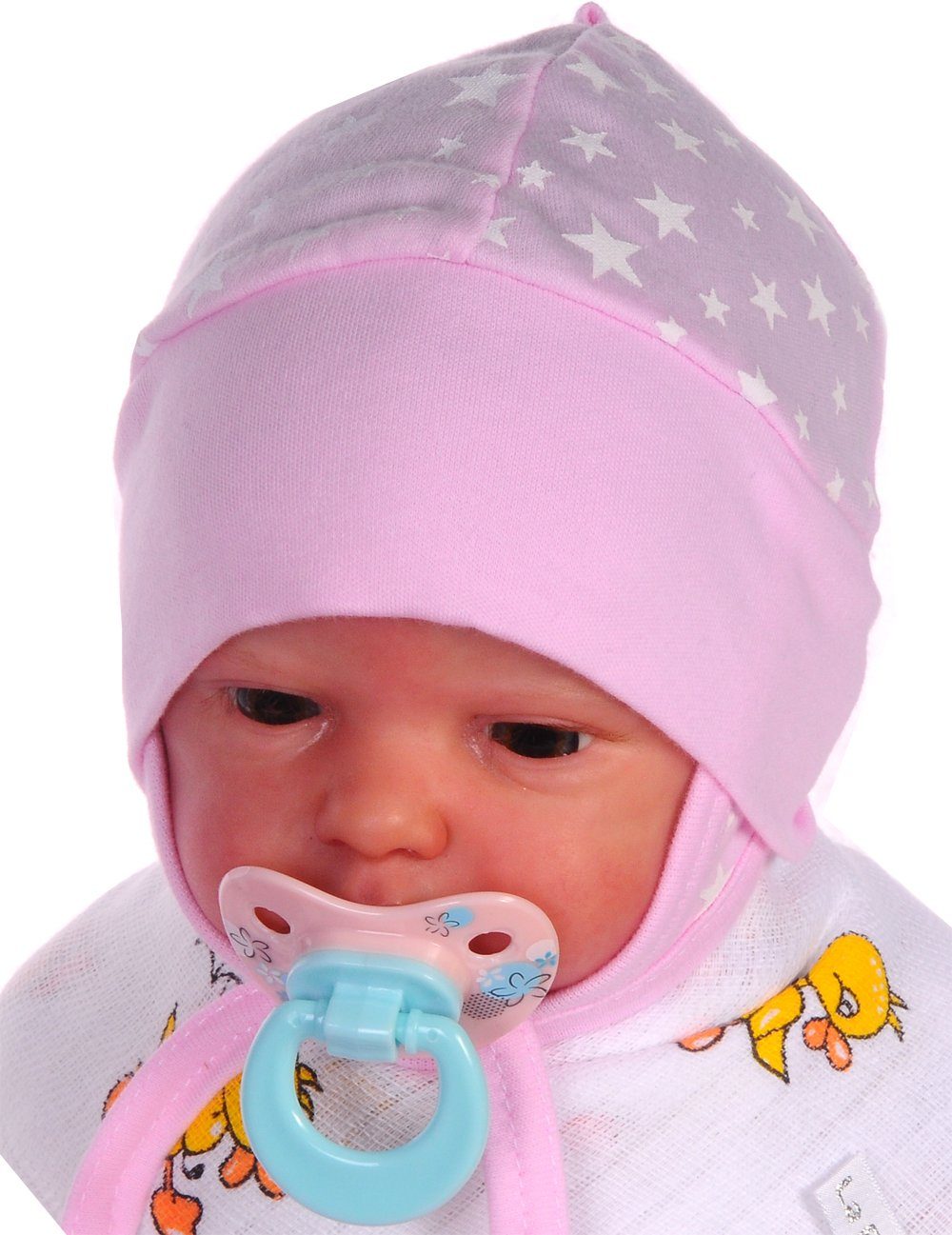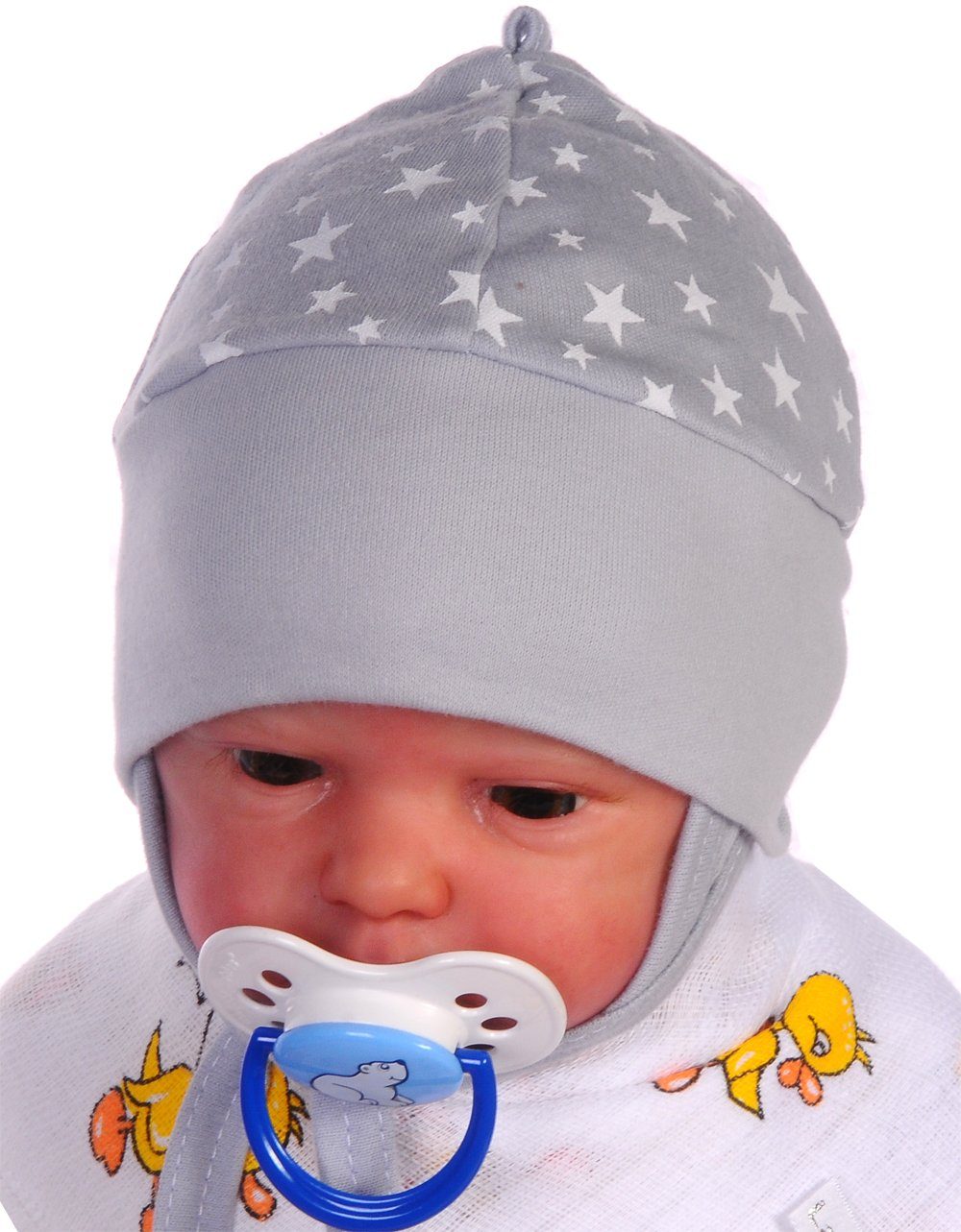 Diese niedliche Baby-Mütze zum Binden mit liebevollem Sternchenmuster ist ideal für die zarte Haut von Neugeborenen! Aus reiner Baumwolle gefertigt, ist sie besonders weich, atmungsaktiv und angenehm zu tragen. Die Bindebänder sorgen für einen sicheren Sitz und halten die Mütze auch bei Bewegungen sanft an Ort und Stelle. Erhältlich in verschiedenen Größen und Farben, passt sie sich den Bedürfnissen jedes kleinen Schatzes perfekt an. Diese Mütze ist das ideale Geschenk zur Geburt – ein stilvolles und praktisches Accessoire, das Wärme und Geborgenheit spendet. Babymütze aus reiner Baumwolle, zum binden mit Ohrenschutz. Größen: 32-34cm KU für Frühchen (44-46), 34-36cm für Neugeborene 0-1Mon 36-38cm KU 1-2Mon , 38-40cm KU 2-4Mon, 4-6Mon 40-42cm KU, 6-9Mon 42-44cm KU, 9-12Mon 44-46cm KU (44, 46, 50, 56, 62, 68, 74, 80) Material: 100% Baumwolle