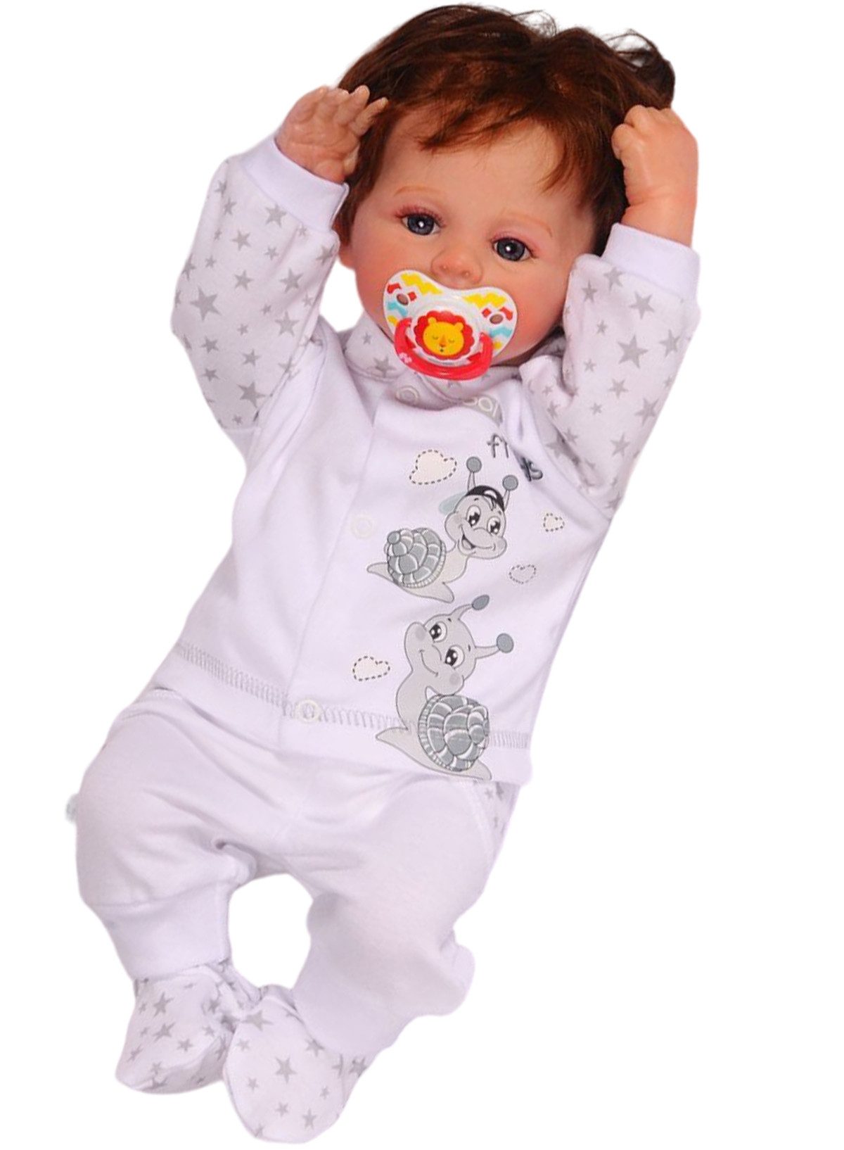 Materialzusammensetzung 100% Baumwolle Materialeigenschaften atmungsaktiv, weich, leicht Größe 44-50 Optik gemustert, Sterne, Sternchen, Schnecke, Weiß Stil casual Besondere Merkmale aus rener Baumwolle, 44 50 56 62 68 74 Details Ganzteile 2-Teilig Details Oberteile mit Druckknöpfen Details Unterteile mit Füschen und breitem Bund Farbe белый