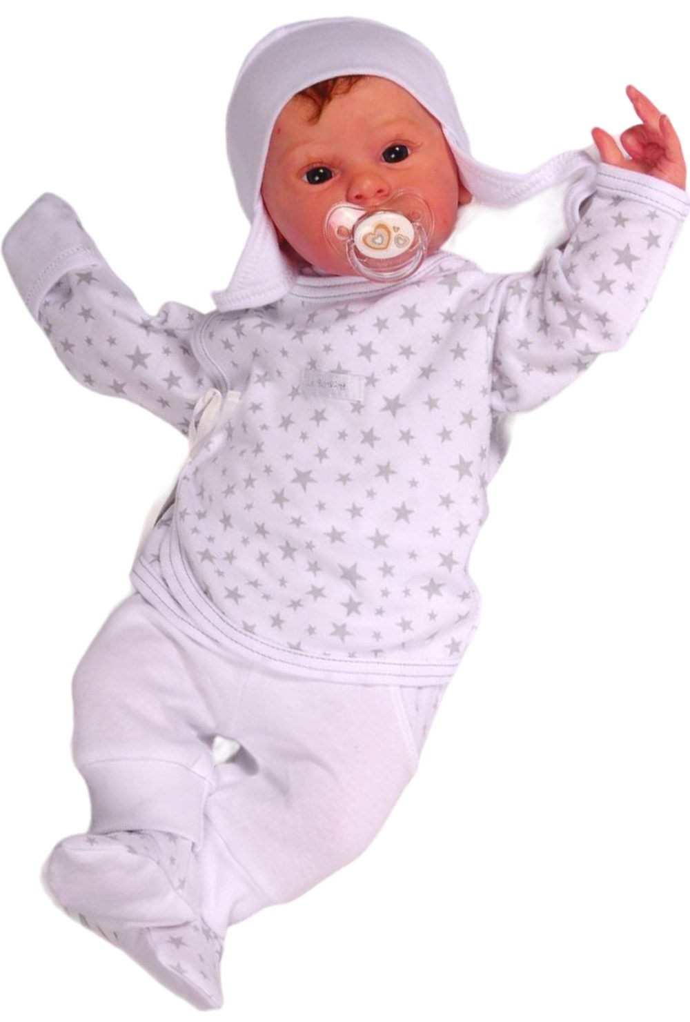Wir freuen uns, Ihnen unseren bezaubernden 3-teiligen Baby Anzug vorzustellen, bestehend aus einer Hose mit Füßchen, einem Wickelshirt mit Kratzschutz und einer süßen Mütze. Dieser Anzug ist aus hochwertiger 100% Baumwolle gefertigt, um Ihrem Baby einen hohen Tragekomfort und beste Materialqualität zu bieten. Die Hose mit Füßchen ist ein praktisches und bequemes Kleidungsstück für Ihr Baby. Sie hält die Füßchen Ihres kleinen Lieblings warm und ist besonders für die kälteren Tage oder klimatisierten Räume geeignet. Die Hose schmiegt sich sanft um die Beinchen Ihres Babys und ermöglicht maximale Bewegungsfreiheit. Das Wickelshirt verfügt über einen Kratzschutz an den Ärmelenden, um das sensible Gesicht und die Haut Ihres Babys vor ungewolltem Kratzen zu schützen. Das Wickel-Design ermöglicht ein einfaches An- und Ausziehen, ohne das Baby zu stören. Die Wickeltechnik ist besonders praktisch, um das Wickeln und Umziehen für Sie als Eltern zu erleichtern. Die süße Mütze rundet den Baby Anzug perfekt ab. Sie hält das Köpfchen Ihres Babys warm und schützt es vor Zugluft. Die Mütze verleiht Ihrem Baby einen liebenswerten Look und ist ideal für kühle Tage oder als Sonnenschutz im Freien geeignet. Unser 3-teiliger Baby Anzug aus 100% Baumwolle ist nicht nur äußerst weich und bequem, sondern auch besonders hautfreundlich und atmungsaktiv. Die Verwendung von Baumwolle garantiert, dass Ihr Baby sich in diesem Anzug rundum wohlfühlt. Dieser Anzug ist sowohl für Jungen als auch für Mädchen geeignet und eignet sich perfekt als Geschenk für frischgebackene Eltern oder als süße Ergänzung für die Babygarderobe. Unser 3-teiliger Baby Anzug mit Hose, Wickelshirt und Mütze bietet eine liebevolle Kombination aus Funktionalität und Stil. Die hochwertige Baumwollqualität und die liebevollen Details machen diesen Anzug zu einem unverzichtbaren Kleidungsstück für Ihr Baby. Gönnen Sie Ihrem kleinen Schatz das Beste mit unserem 3-teiligen Baby Anzug aus 100% Baumwolle! Bestellen Sie noch heute und sorgen Sie für Komfort und Geborgenheit für Ihr Baby