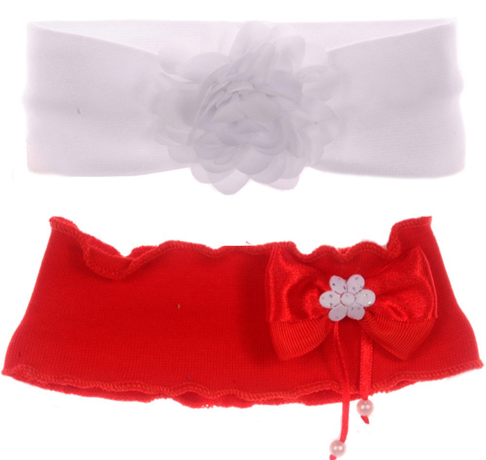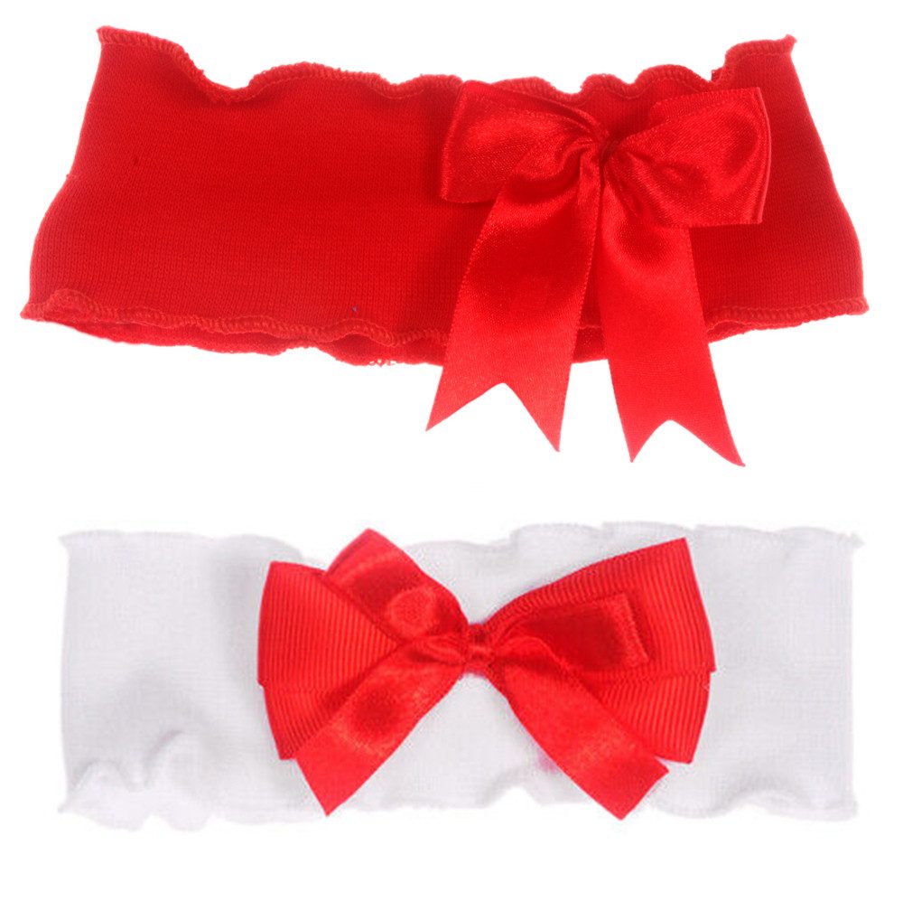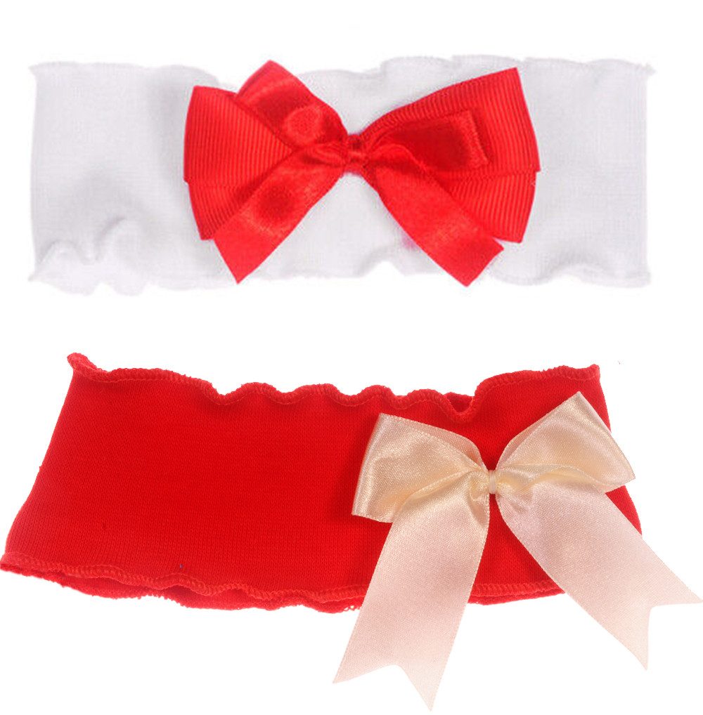 Festliches Doppelpack: Zwei elastische Stirnbänder mit Schleife in verschiedenen Farbkombinationen nach Wahl: wie Rot, Weiß, Creme usw.