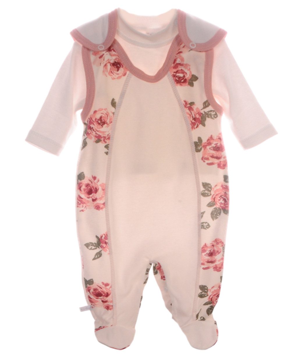 Dieses liebevoll gestaltete 2-teilige Babyset ist speziell für kleine Mädchen konzipiert und vereint Komfort mit einem bezaubernden Design. Der ärmellose Strampler in zartem Creme ist mit einem romantischen Rosen-Blumen-Muster versehen und verfügt über praktische Druckknöpfe im Schritt sowie im Schulterbereich – ideal für einfaches An- und Ausziehen sowie müheloses Wickeln. Ergänzt wird das Set durch ein farblich abgestimmtes Langarmshirt in Creme, das angenehm weich auf der Haut liegt und besten Tragekomfort bietet. Beide Teile sind aus 100 % reiner Baumwolle gefertigt, wodurch sie besonders hautfreundlich, atmungsaktiv und perfekt für empfindliche Babyhaut geeignet sind. Dieses stilvolle Set ist ideal für alle Jahreszeiten und eine wunderschöne Geschenkidee zur Geburt – ein entzückendes Outfit für Baby Mädchen.