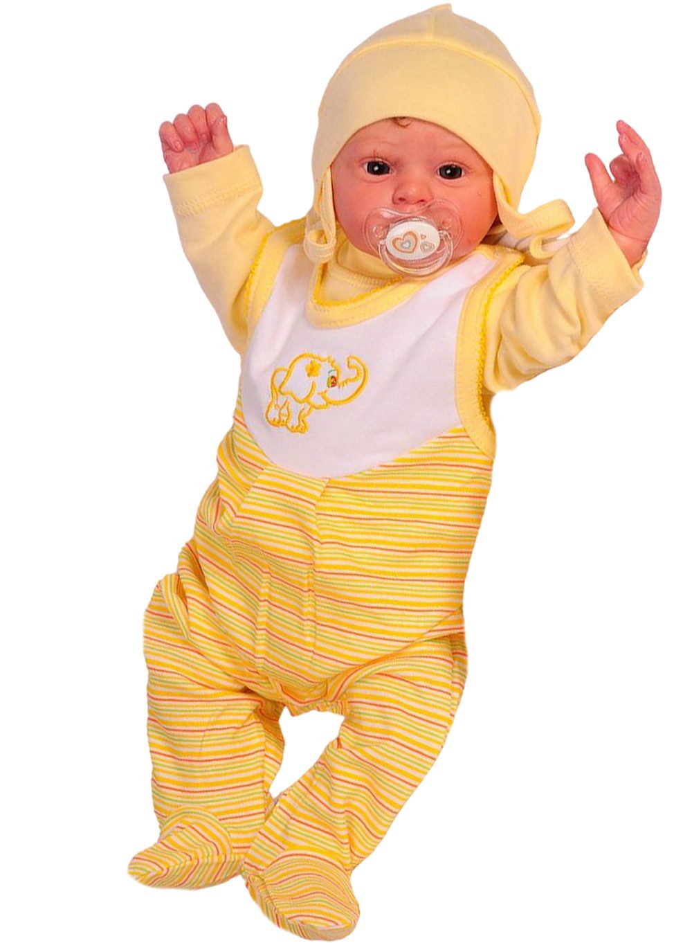 Erstlingsausstattung. Dieses süße 3-teilige Baby-Set in Gelb besteht aus einem gestreiften Strampler mit einer liebevollen Elefanten-Stickerei, einem passenden Langarmshirt und einer weichen Mütze, beide in schlichtem Gelb ohne Muster. Все Teile sind aus 100% reiner Baumwolle gefertigt und bieten optimalen Tragekomfort für die empfindliche Haut Ihres Babys. Der Strampler ist mit praktischen Druckknöpfen ausgestattet, die das An- und Ausziehen erleichtern. Dieses Set ist die perfekte Kombination aus Stil und Funktionalität für den Alltag Ihres Babys.