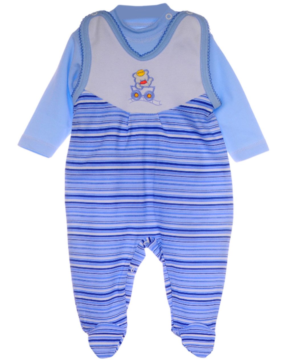 Dieses liebevoll gestaltete 2-teilige Baby-Set für Jungen kombiniert süßes Design mit praktischer Funktionalität – ideal für Neugeborene und die Erstausstattung. Das Set besteht aus einem ärmellosen Strampler in Blau-Weiß gestreift, verziert mit einer niedlichen Bärchen-Stickerei auf der Brust. Dazu gehört ein einfarbiges Langarmshirt in Blau, schlicht gehalten und mit zwei Druckknöpfen an der Schulter für einfaches An- und Ausziehen – besonders praktisch im Alltag mit Neugeborenen. Beide Teile bestehen aus 100 % reiner Baumwolle und sind dadurch besonders weich, hautfreundlich und atmungsaktiv. Der Strampler verfügt über Druckknöpfe im Schulter- und Schrittbereich, was das Wickeln erleichtert und zusätzlichen Komfort bietet. Dieses Set eignet sich perfekt für jede Jahreszeit und ist ein wunderschönes Geschenk zur Geburt oder Taufe – praktisch, hochwertig und liebevoll verarbeitet.