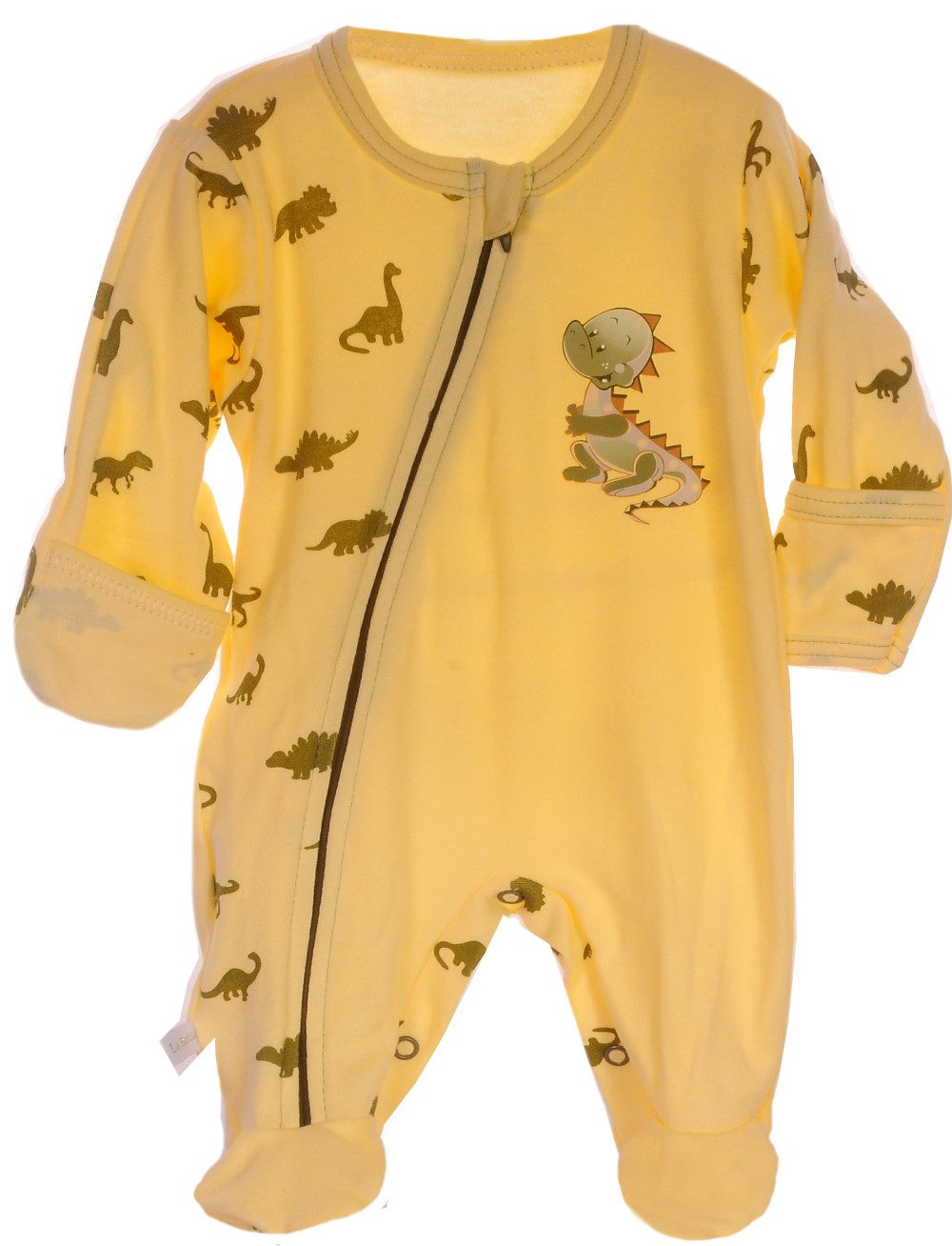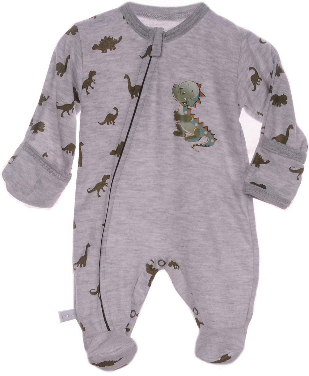 Dieser Strampler-Schlafanzug aus reiner Baumwolle bietet Ihrem Baby höchsten Komfort und schützt gleichzeitig mit einem durchgehenden Reißverschluss und praktischen Druckknöpfen im Schritt. Der Schlafanzug verfügt über extra lange Ärmel und eine Kratzschutz-Funktion, die den empfindlichen Halsbereich Ihres Babys schützt. Er ist in Creme oder Gelb erhältlich, jeweils mit einem süßen Dino-Muster und Print. Das unisex Design macht ihn ideal für sowohl Baby Jungen als auch Mädchen und ist somit ein perfektes Geschenk zur Geburt. Weich, atmungsaktiv und sanft zur Haut – ideal für alle Jahreszeiten.