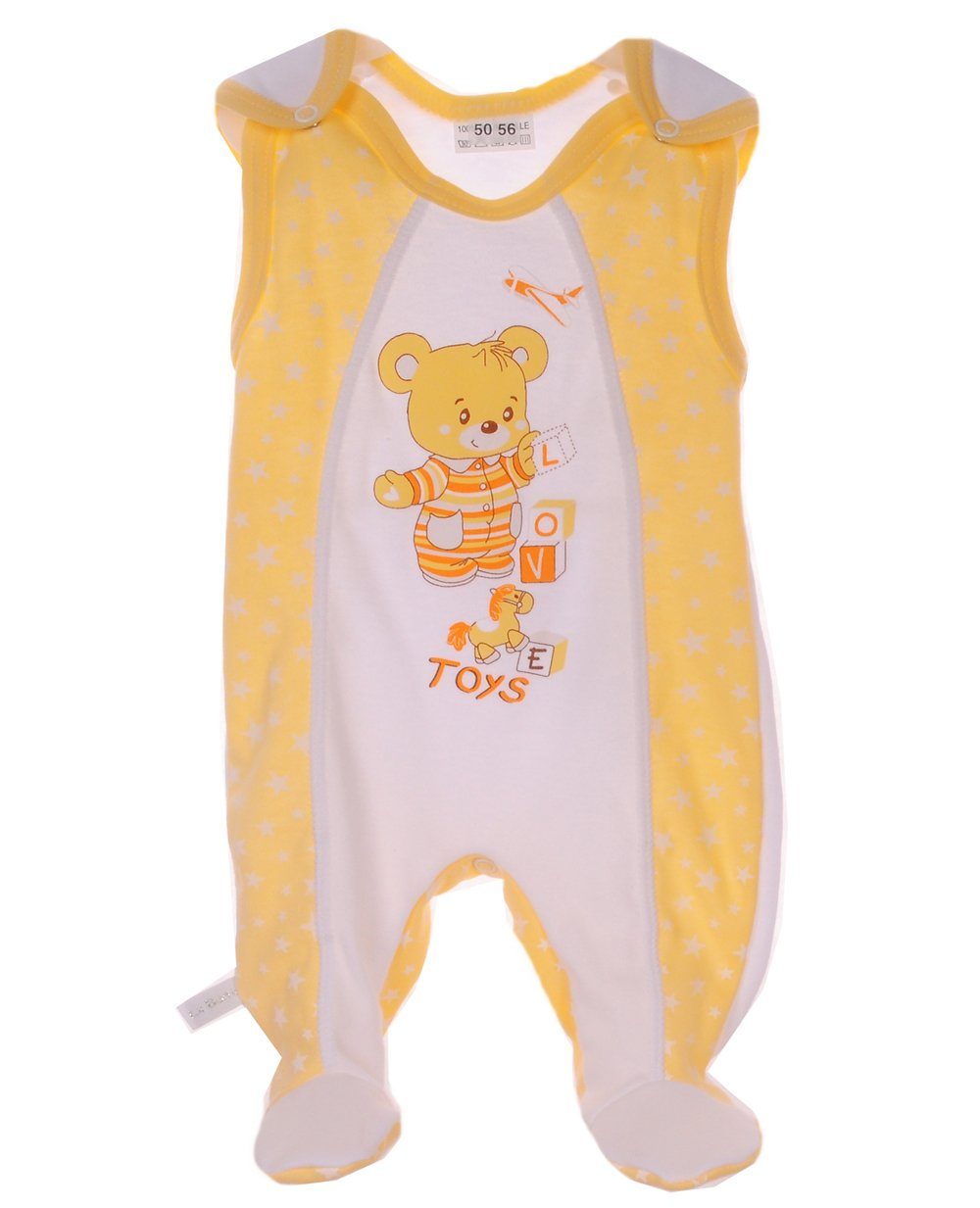 Willkommen in der Welt des Komforts und des Stils für die Kleinsten! Unser ärmelloser Strampler mit Füßchen aus hochwertiger, reiner Baumwolle ist die perfekte Wahl für Neugeborene, Frühchen und Kleinkinder. Mit einem zeitlosen Design in Weiß und Gelb, verziert mit niedlichen Sternen und einem bezaubernden Bärchen-Print, ist dieser Strampler nicht nur bequem, sondern auch absolut entzückend. Unsere ärmellosen Strampler sind sorgfältig entworfen, um den Bedürfnissen Ihres Babys gerecht zu werden. Sie bieten uneingeschränkte Bewegungsfreiheit und halten Ihr kleines Wunder stets angenehm warm. Die Verwendung von reiner Baumwolle garantiert eine atmungsaktive und weiche Umgebung, die die empfindliche Haut Ihres Babys sanft umschmeichelt. Dieser Strampler eignet sich perfekt für jede Jahreszeit, sei es an warmen Sommertagen oder gemütlichen Winternächten.