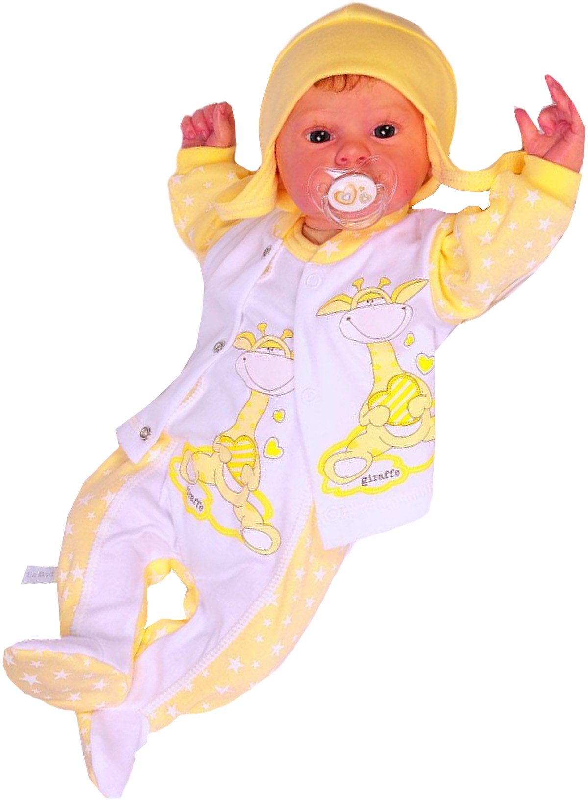 Dieser niedliche Baby-Anzug besteht aus einem Strampler und einem Hemdchen in Weiß und Gelb mit einem süßen Sternchen-Muster und einem fröhlichen Giraffen-Aufdruck, sowie einer passenden Mütze in Gelb. Der Anzug wurde aus 100 % reiner Baumwolle gefertigt und bietet Ihrem Baby höchsten Komfort und ein besonders weiches Tragegefühl – perfekt für die empfindliche Babyhaut. Der Strampler ist mit praktischen Druckknöpfen im Schritt und an den Schultern ausgestattet, was das An- und Ausziehen sowie das Wickeln erleichtert. Das Hemdchen mit Druckknöpfen sorgt für zusätzlichen Komfort und lässt sich problemlos an- und ausziehen. Die süße Mütze in Gelb rundet das Outfit ab und hält das Köpfchen angenehm warm. Das fröhliche Design mit den Sternchen und dem Giraffen-Aufdruck verleiht diesem Anzug einen verspielten Look, der sowohl für den Alltag als auch für besondere Anlässe geeignet ist. Ideal als Geschenk zur Geburt – ein charmantes und praktisches Set für jedes Baby-Mädchen.