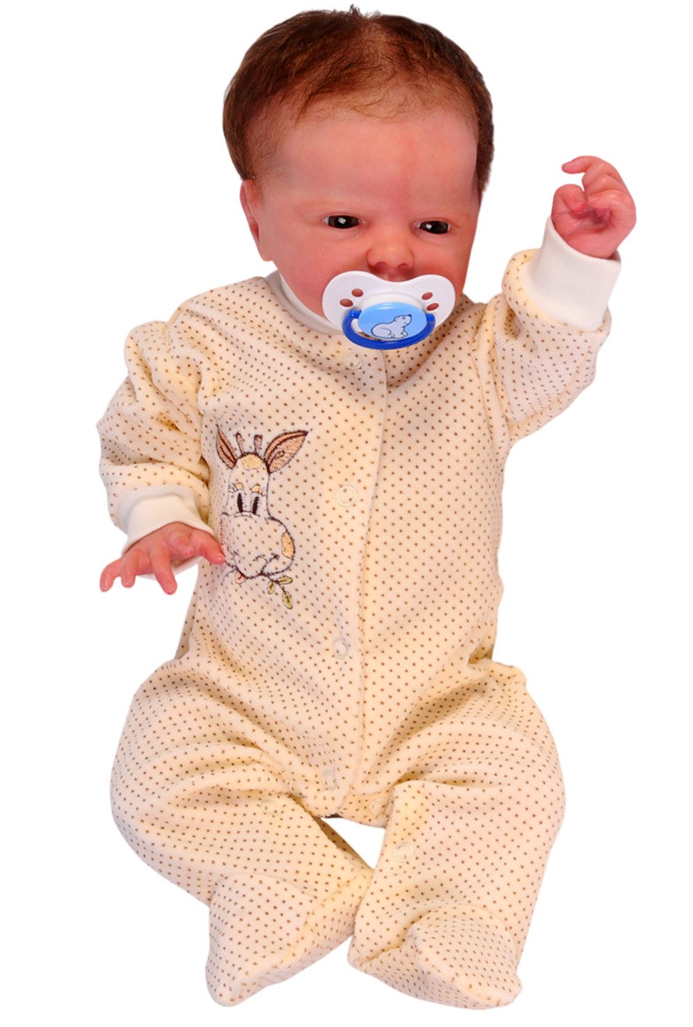 Dieser kuschelige Strampler-Overall aus weichem Velours (80% Baumwolle, 20% Polyester) bietet höchsten Tragekomfort für Ihr Baby. Das beige Design mit zarten Punkten und niedlicher Giraffen-Stickerei macht ihn zu einem echten Hingucker. Dank der durchgehenden Druckknopfleiste lässt sich der Overall besonders einfach an- und ausziehen. Neutral und unisex, eignet er sich perfekt für Baby Jungen und Mädchen. Ob als Schlafanzug, Hausanzug oder Strampler, dieser Overall ist ideal für alle Jahreszeiten und ein wunderbares Geschenk zur Geburt.