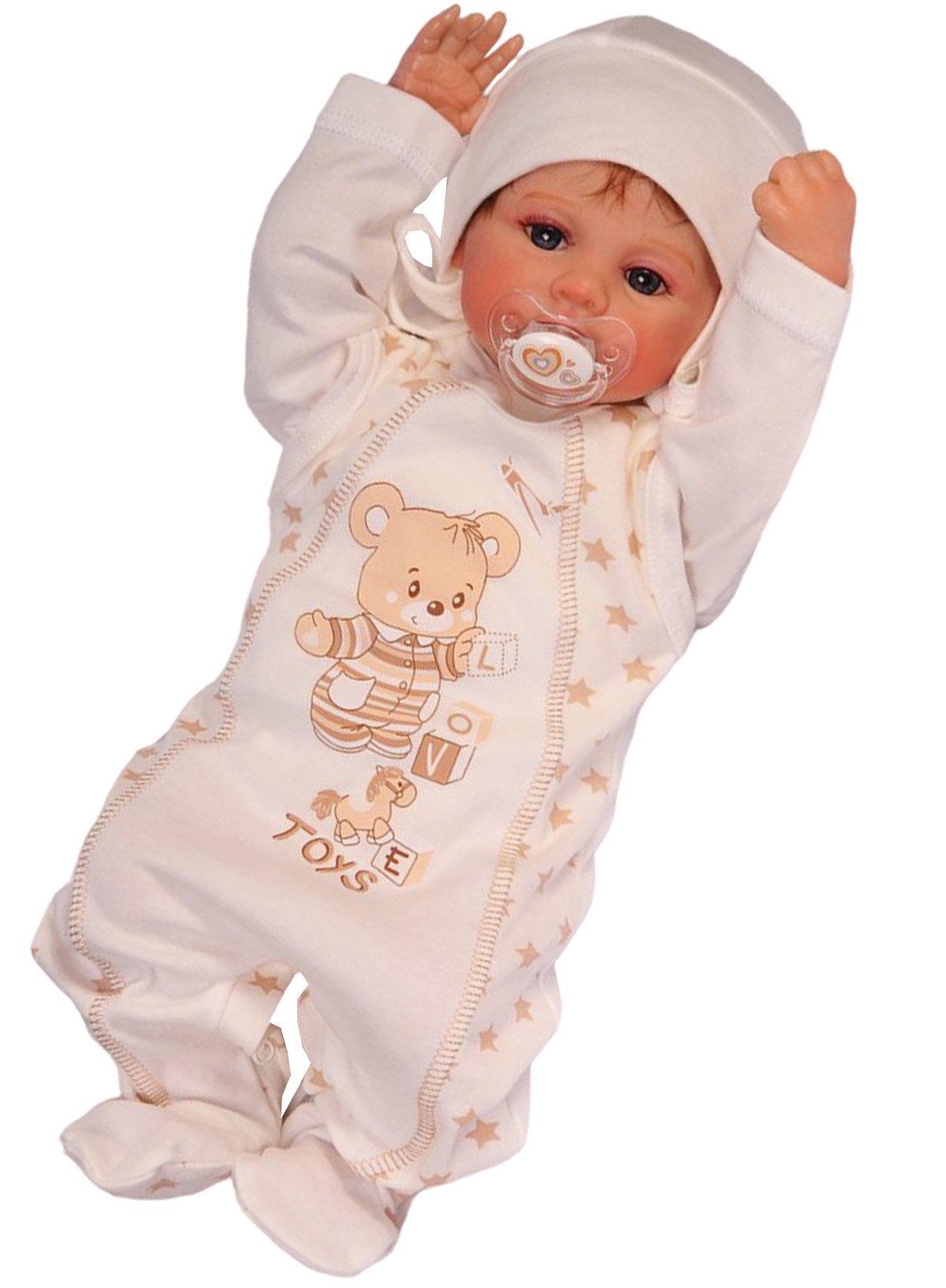 Willkommen in der Welt des Komforts und der Eleganz für Ihr Neugeborenes! Unser 3-teiliges Baby Set, bestehend aus einem Strampler, einem Hemdchen und einer Mütze, ist die ideale Wahl für frischgebackene Eltern, die nur das Beste für ihr Baby suchen. Dieses liebevoll gestaltete Set besticht durch seine praktischen Details und das charmante Design. Der Strampler ist mit Druckknöpfen im Schritt und an den Schultern ausgestattet, was das An- und Ausziehen zu einem Kinderspiel macht. Das Hemdchen verfügt ebenfalls über praktische Druckknöpfe, die das Wickeln und Umziehen erleichtern. Die Mütze mit Bindebändern sorgt dafür, dass das Köpfchen Ihres Babys stets warm und geschützt bleibt. Все drei Teile sind aus 100% reiner Baumwolle gefertigt. Diese Naturfaser ist besonders sanft zur empfindlichen Babyhaut und bietet gleichzeitig eine hervorragende Atmungsaktivität. Die Baumwolle sorgt dafür, dass sich Ihr Baby das ganze Jahr über wohlfühlt – im Sommer angenehm kühl und im Winter wohlig warm. Der Strampler ist in einem sanften Creme-Ton gehalten und mit einem entzückenden Sternchen-Muster sowie einem niedlichen Bärchen-Print versehen. Das Hemdchen und die Mütze sind einfarbig in Creme, was dem Set eine harmonische und stilvolle Optik verleiht. Dieses 3-teilige Set ist ein Всеskönner. Es eignet sich perfekt als tägliche Bekleidung für Ihr Neugeborenes und ist gleichzeitig eine wunderbare Geschenkidee für besondere Anlässe wie Geburt, Taufe oder Babyshower. Die hochwertige Verarbeitung und das zeitlose Design machen es zu einem Geschenk, das in Erinnerung bleibt. Mit unserem 3-teiligen Baby Set erhalten Sie nicht nur ein funktionales und bequemes Outfit für Ihr Baby, sondern auch ein stilvolles Ensemble, das mit Liebe zum Detail gefertigt wurde. Schenken Sie Ihrem Kind das Beste – zarte Baumwolle, durchdachtes Design und bezaubernde Optik in einem. Lassen Sie sich dieses wunderschöne Set nicht entgehen und bereiten Sie Ihrem Baby oder den frischgebackenen Eltern in Ihrem Freundeskreis eine große Freude! Bestellen Sie noch heute und erleben Sie die perfekte Kombination aus Komfort, Qualität und Stil.