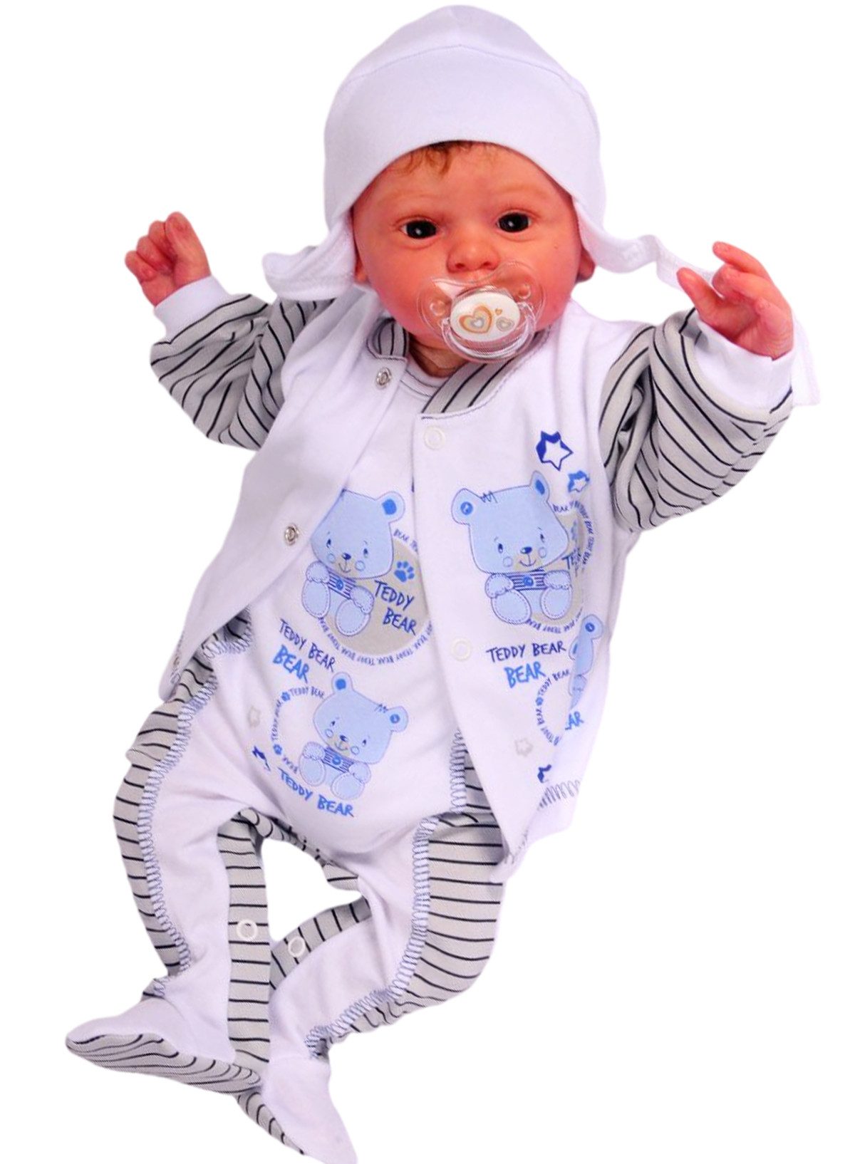 Dieses 3-teilige Baby-Set bestehend aus Strampler, Hemdchen und Mütze bietet höchsten Komfort und eine zauberhafte Optik. Gefertigt aus 100 % reiner Baumwolle, ist es besonders hautfreundlich, atmungsaktiv und angenehm zu tragen. Das weiß-grau gestreifte Design mit süßem Bärchen-Aufdruck verleiht dem Set einen liebevollen Look. Dank des durchdachten Schnitts ist das Set für alle Jahreszeiten geeignet – im Sommer angenehm luftig, im Winter ideal zum Kombinieren mit wärmeren Schichten. Der geschlechtsneutrale Stil macht es perfekt für Baby Jungen und Mädchen. Ein wundervolles Geschenk zur Geburt, das Eltern und Babys gleichermaßen begeistert!