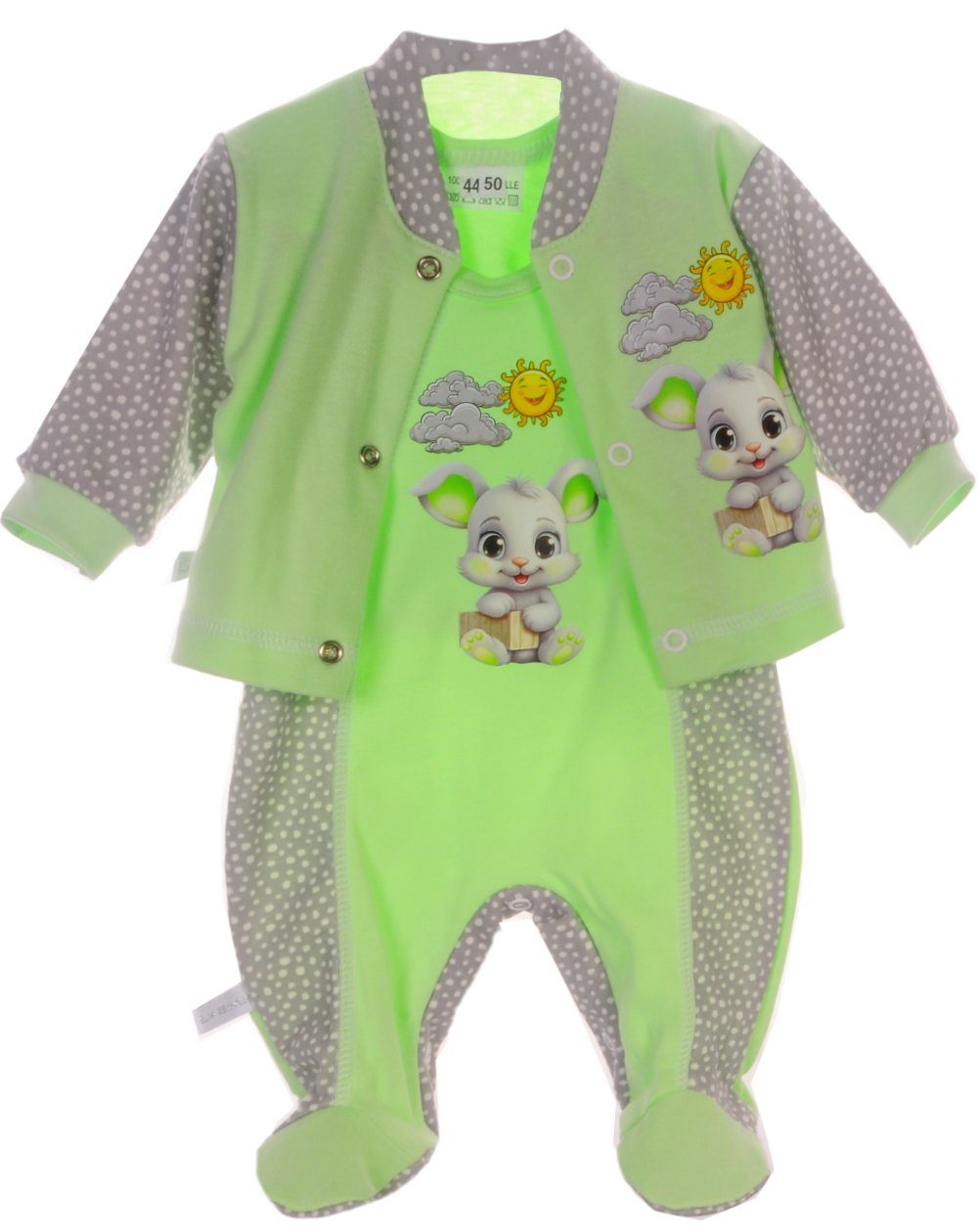 Entdecken Sie dieses zauberhafte 2-teilige Erstlingsausstattungs-Set, das mit seinem charmanten Design und strahlenden Farben sofort ins Auge fällt. Der ärmellose Strampler ist mit praktischen Druckknöpfen im Schritt und an den Schultern ausgestattet, für einfaches An- und Ausziehen. Das passende langärmelige Hemdchen ergänzt den Strampler perfekt und komplettiert den Look. Beide Teile sind mit einem wunderschönen Muster und einem einzigartigen Print versehen, der Frische und Freude ausstrahlt. Hergestellt aus reiner Baumwolle bieten sie höchsten Komfort für die zarte Babyhaut und sind in verschiedenen Größen erhältlich, um jedem Neugeborenen perfekt zu passen. Ob Frühling, Sommer, Herbst oder Winter - dieses Set ist für alle Jahreszeiten geeignet und wird Ihr Baby stets bequem und stilvoll kleiden. Mit seiner liebevollen Gestaltung und hochwertigen Materialien eignet es sich auch perfekt als Geschenk zur Geburt, um neuen Eltern eine Freude zu bereiten.