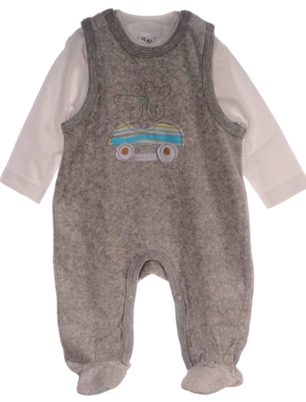 Dieser gemütliche Strampler aus weichem Velours (Nicki-Stoff: 80% Baumwolle, 20% Polyester) in Grau mit niedlicher Tier-Stickerei ist ideal für Ihr Baby. Kombiniert mit einem langärmligen Shirt aus reiner Baumwolle in Creme, bietet dieses Set optimalen Komfort und Wärme. Der weiche Nicki-Stoff hält Ihr Baby angenehm warm und ist gleichzeitig sanft zur Haut. Dank der hautfreundlichen Materialien eignet sich dieses Baby-Set perfekt für alle Jahreszeiten. Der graue Strampler mit süßer Tier-Stickerei und das cremefarbene Langarmshirt bilden ein harmonisches Ensemble, das sowohl praktisch als auch stilvoll ist. Ideal auch als Geschenk zur Geburt.