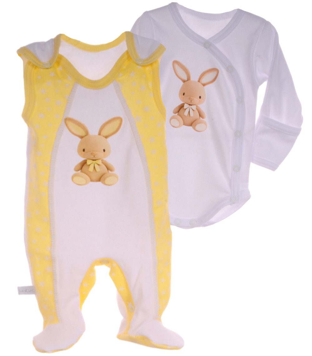 Dieser süße ärmellose Strampler in Weiß-Gelb mit Hasen-Aufdruck ist das perfekte Erstlingsset für Baby Jungen und Mädchen. Der Strampler verfügt über praktische Druckknöpfe im Schritt und an den Schultern, die das Wickeln und Umziehen erleichtern. Dazu gehört ein passender Langarmbody in Weiß mit einem niedlichen Häschen-Aufdruck. Der Body ist mit extra langen Ärmeln und Kratzschutz ausgestattet, um den Komfort des Babys zu gewährleisten. Hergestellt aus 100 % reiner Baumwolle, bietet das Set eine besonders weiche, hautfreundliche und atmungsaktive Qualität – ideal für die empfindliche Babyhaut. Das neutrale, geschlechtsunabhängige Design macht das Set perfekt als Geschenk zur Geburt oder zu Ostern. Das Set eignet sich für alle Jahreszeiten und ist eine wunderbare Ergänzung der Erstausstattung. Ein bezauberndes und praktisches Outfit für Neugeborene!