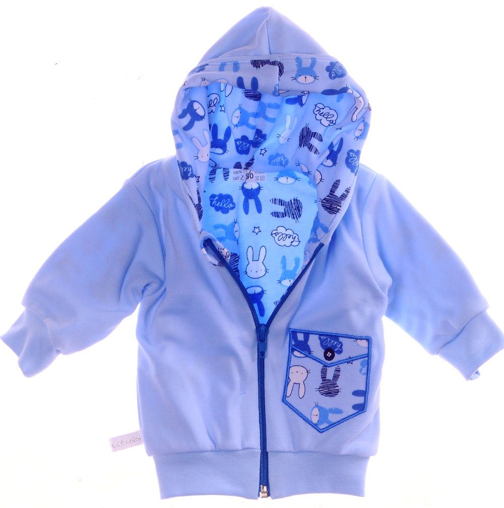 Baby Jacke mit Reißverschluss, Kinnschutz und Kapuze – Blau mit Hasenmuster, doppellagig, Ideal für Sommer, Frühjahr und Herbst Diese Baby Jacke in Blau ist ein praktischer und zugleich niedlicher Begleiter für die Übergangszeiten wie Sommer, Frühjahr und Herbst. Der Oberstoff in Blau lässt sich wunderbar kombinieren, während das blaue Innenfutter mit Hasenmuster einen charmanten, verspielten Look verleiht. Die Jacke ist doppellagig, was für extra Wärme und Komfort sorgt. Mit einem Reißverschluss, Kinnschutz und einer Kapuze bietet sie optimalen Schutz vor Wind und Wetter. Produktmerkmale: Doppellagig: Für zusätzlichen Komfort und Wärme, ideal für die Übergangszeit. Oberstoff in Blau: Klassisch und vielseitig, passt sich problemlos verschiedenen Outfits an. Blaues Innenfutter mit Hasenmuster: Süßes, verspieltes Hasen-Muster im Innenfutter sorgt für einen niedlichen Akzent. Reißverschluss mit Kinnschutz: Einfaches An- und Ausziehen, der Kinnschutz schützt vor Hautirritationen. Kapuze: Praktische Kapuze, die den Kopf des Babys vor Wind und Kälte schützt. Perfekt für Übergangszeiten: Ideal für Sommer, Frühling und Herbst. Diese Baby Jacke ist nicht nur funktional, sondern auch modisch und sorgt dafür, dass Ihr Baby in den Übergangsmonaten stets gut geschützt und komfortabel unterwegs ist.