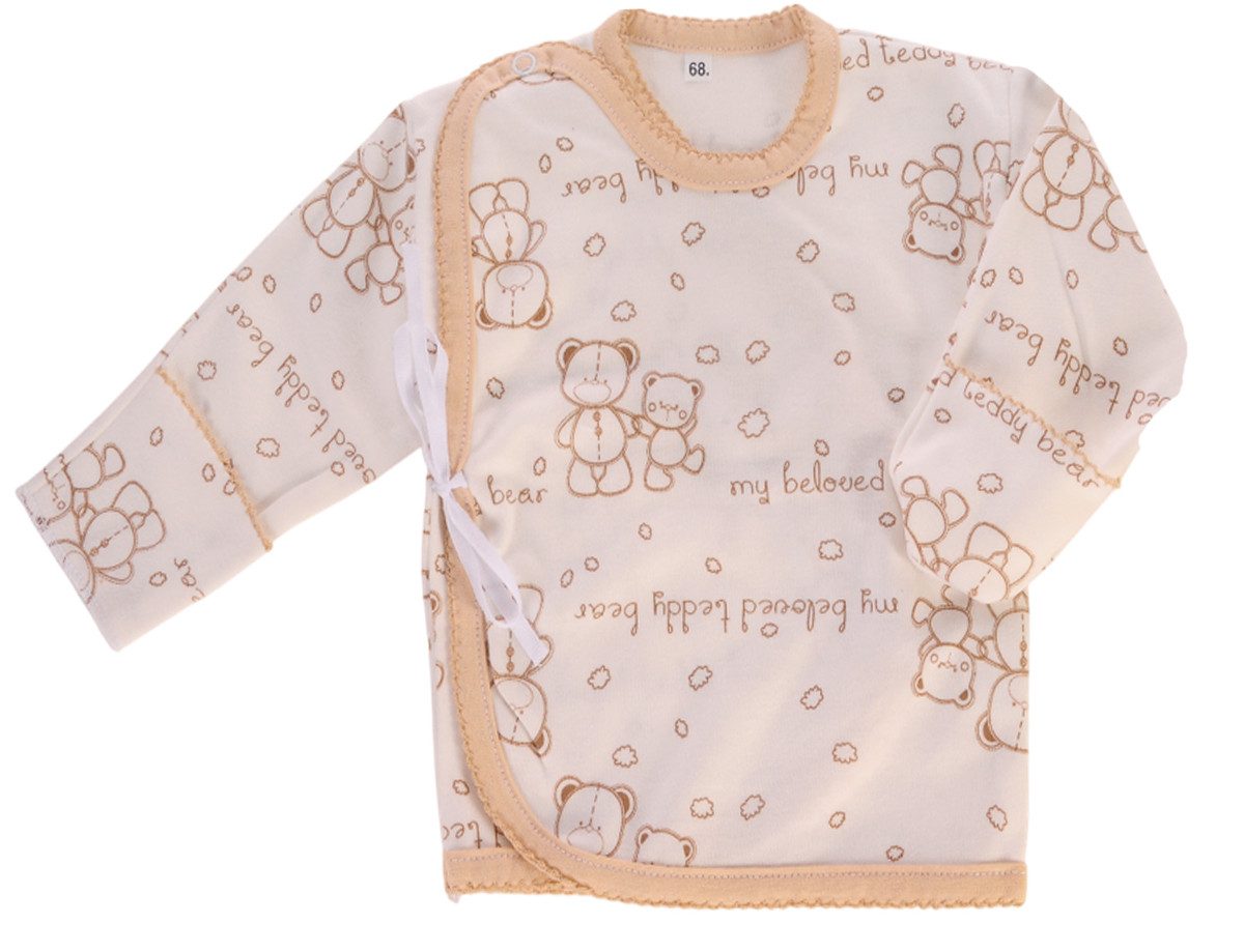 Dieses niedliche Wickelhemdchen mit süßem Bären-Muster ist die perfekte Wahl für Babys in den Größen 62-68 (2-4 Monate). Hergestellt aus 100% reiner Baumwolle, ist es besonders sanft zur empfindlichen Haut Ihres Babys und sorgt für hohen Tragekomfort. Das Wickelhemdchen ist in zarten Creme-Beige-Tönen gehalten und mit einem bezaubernden Muster verziert, das es besonders charmant macht. Das praktische Wickeldesign mit Bindebändern und Druckknöpfen ermöglicht ein einfaches An- und Ausziehen. Die integrierten Kratzschutz-Ärmel schützen das Baby vor ungewollten Kratzern und sorgen für zusätzlichen Komfort. Für Jungen und Mädchen gleichermaßen geeignet, ist es für alle Jahreszeiten perfekt und eine wunderbare Geschenkidee zur Geburt, die Funktionalität und Stil vereint.