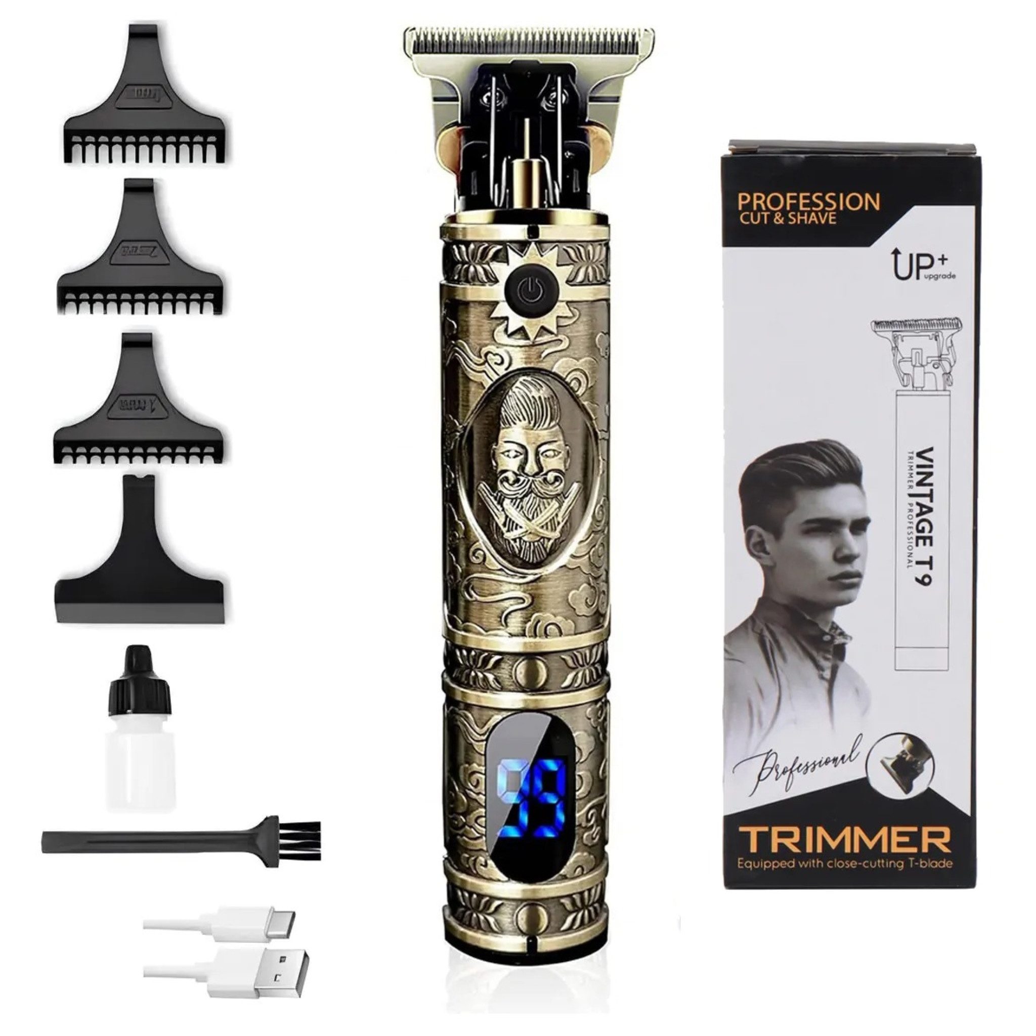 Dieser professionelle Trimmer eignet sich ideal für das präzise Schneiden, Stylen und Rasieren von Bart und Haaren. Dank hochwertiger Klingen und verschiedener Aufsätze können Sie Ihren Look individuell anpassen. Der eingebaute Akku ermöglicht kabelloses Arbeiten, während das LCD-Display den Ladestand anzeigt.