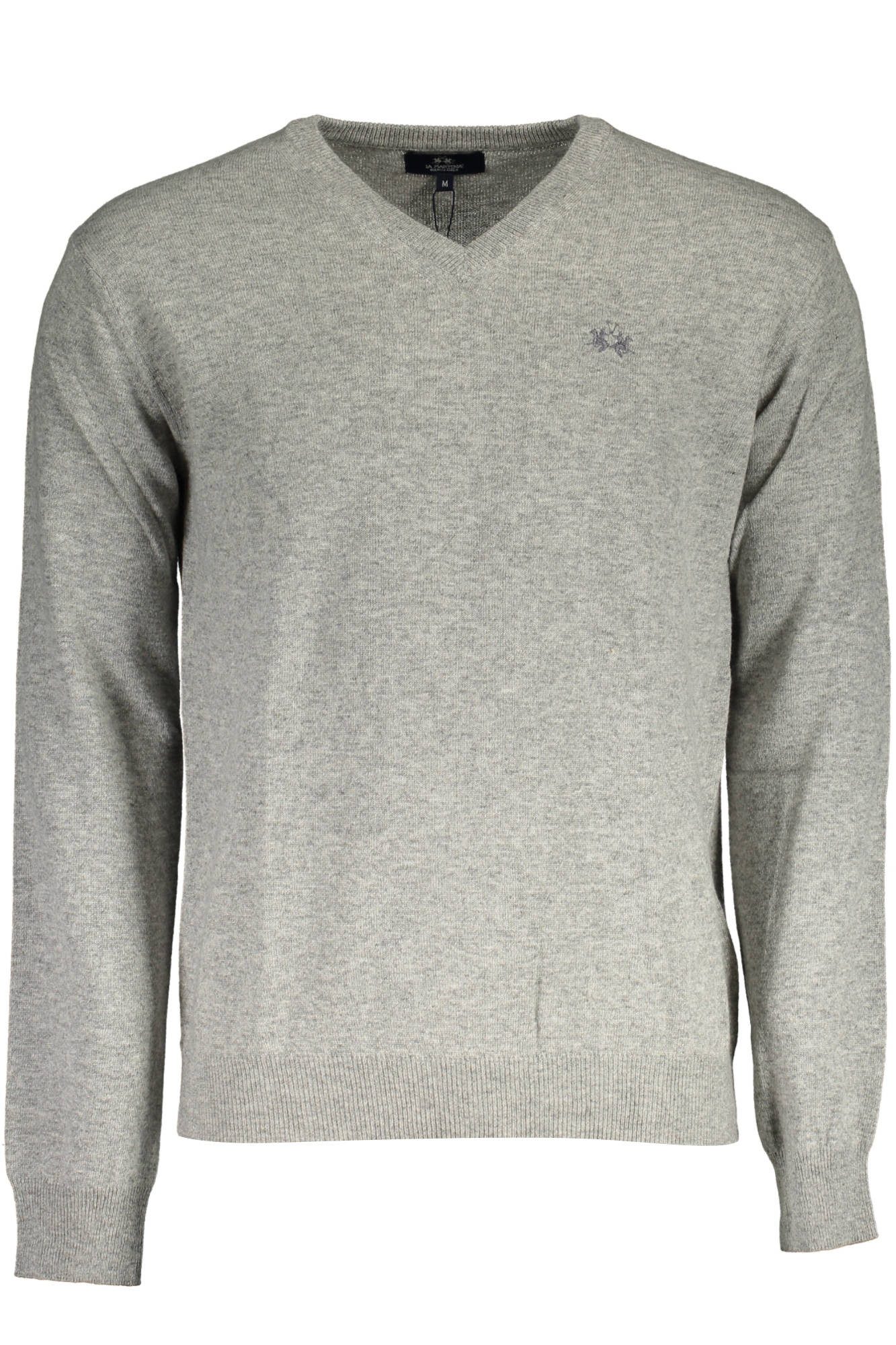Besondere Merkmale | Herren-Pullover Grau - V-Ausschnitt, Regular Fit, Stickerei, Logo |