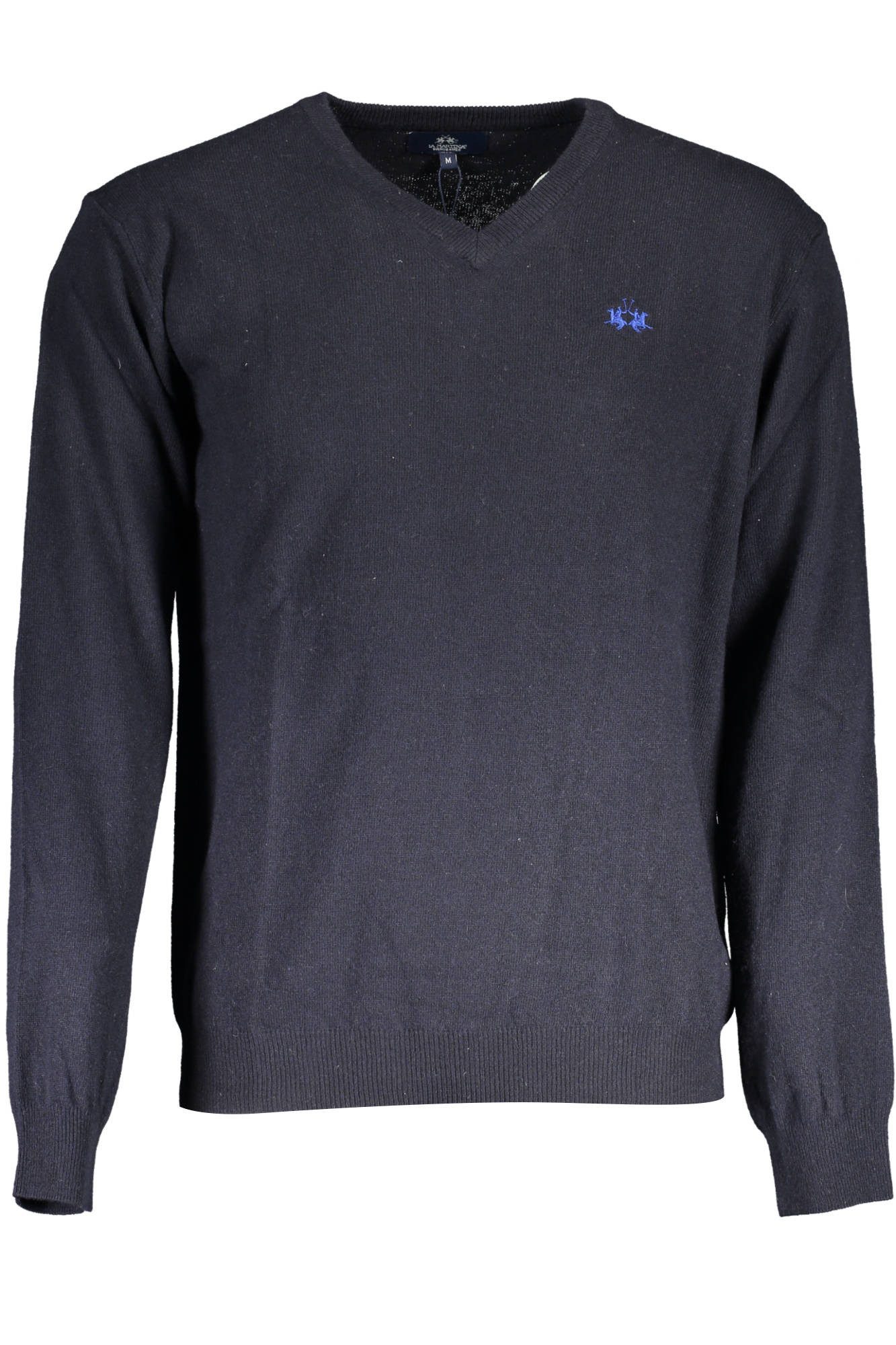 Besondere Merkmale | Moderner Herrenpullover in Blau: V-Ausschnitt & Stickereidetails |