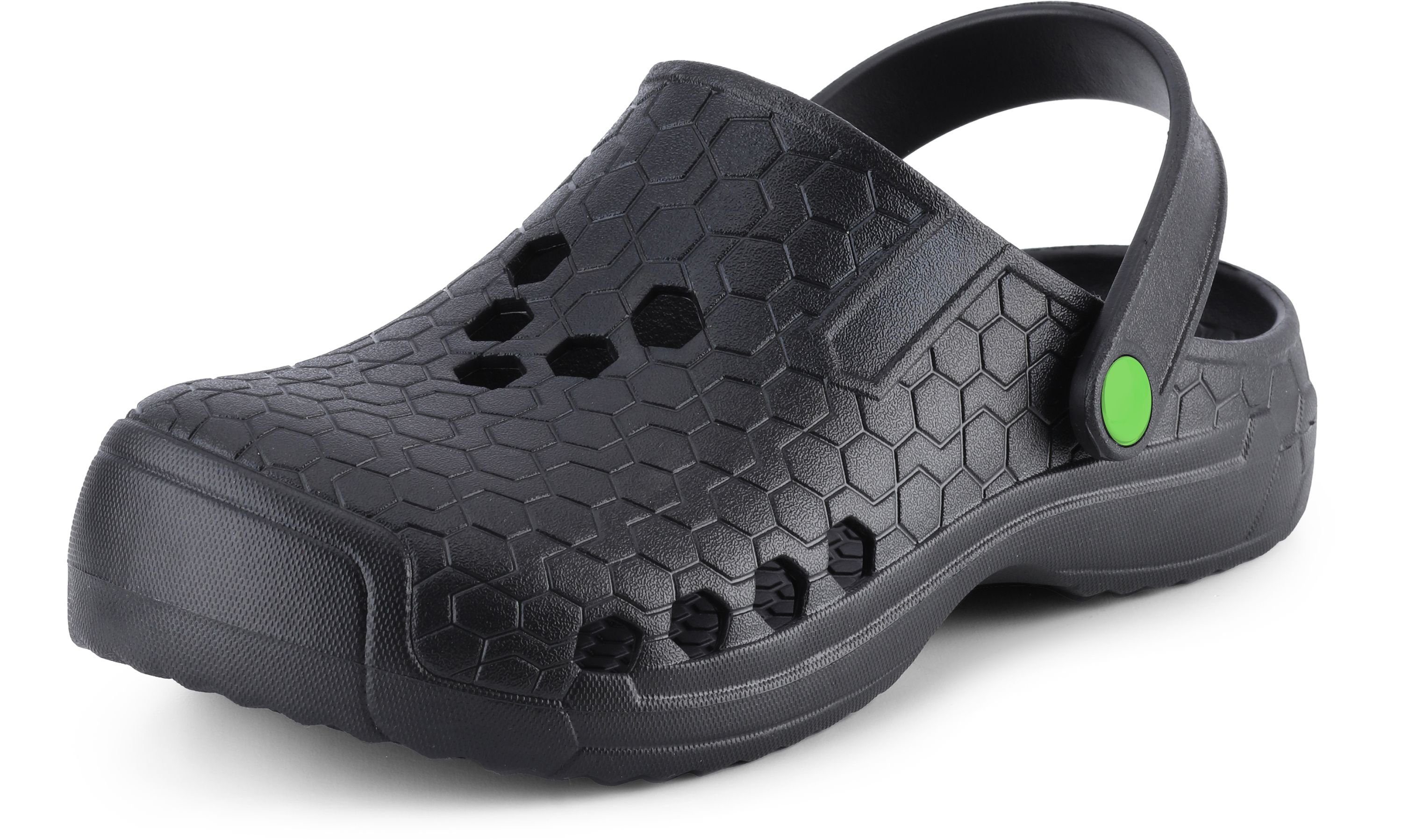 Die Clogs haben spezielle Löcher zum besseren Luftaustausch sowie einstellbare Sicherheits-Fersenriemen.
